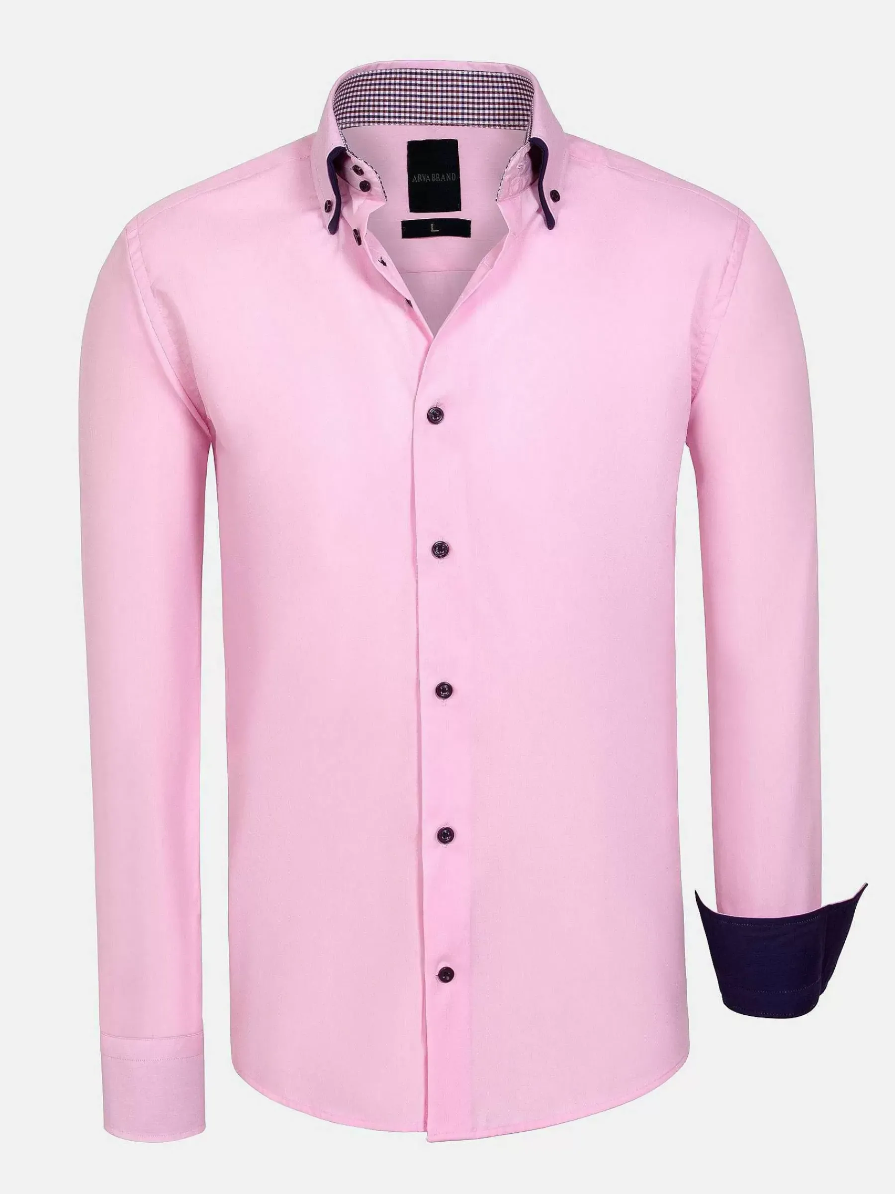 Wam Denim Overhemd Lange Mouwen<Ales Solid Structured Pink Overhemd Lange Mouw