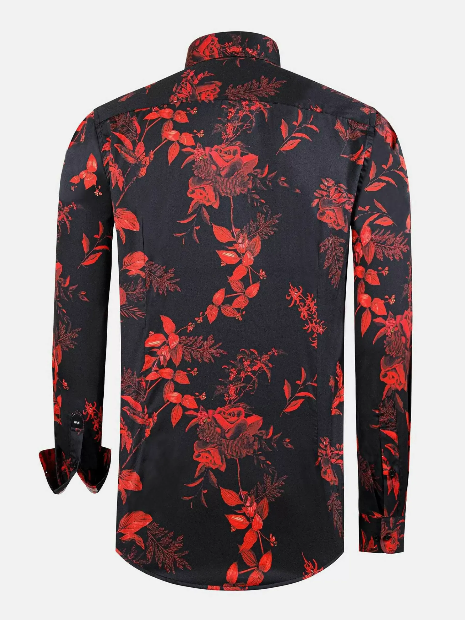 Wam Denim Overhemd Lange Mouwen<Florence Red Floral Black Overhemd Lange Mouw