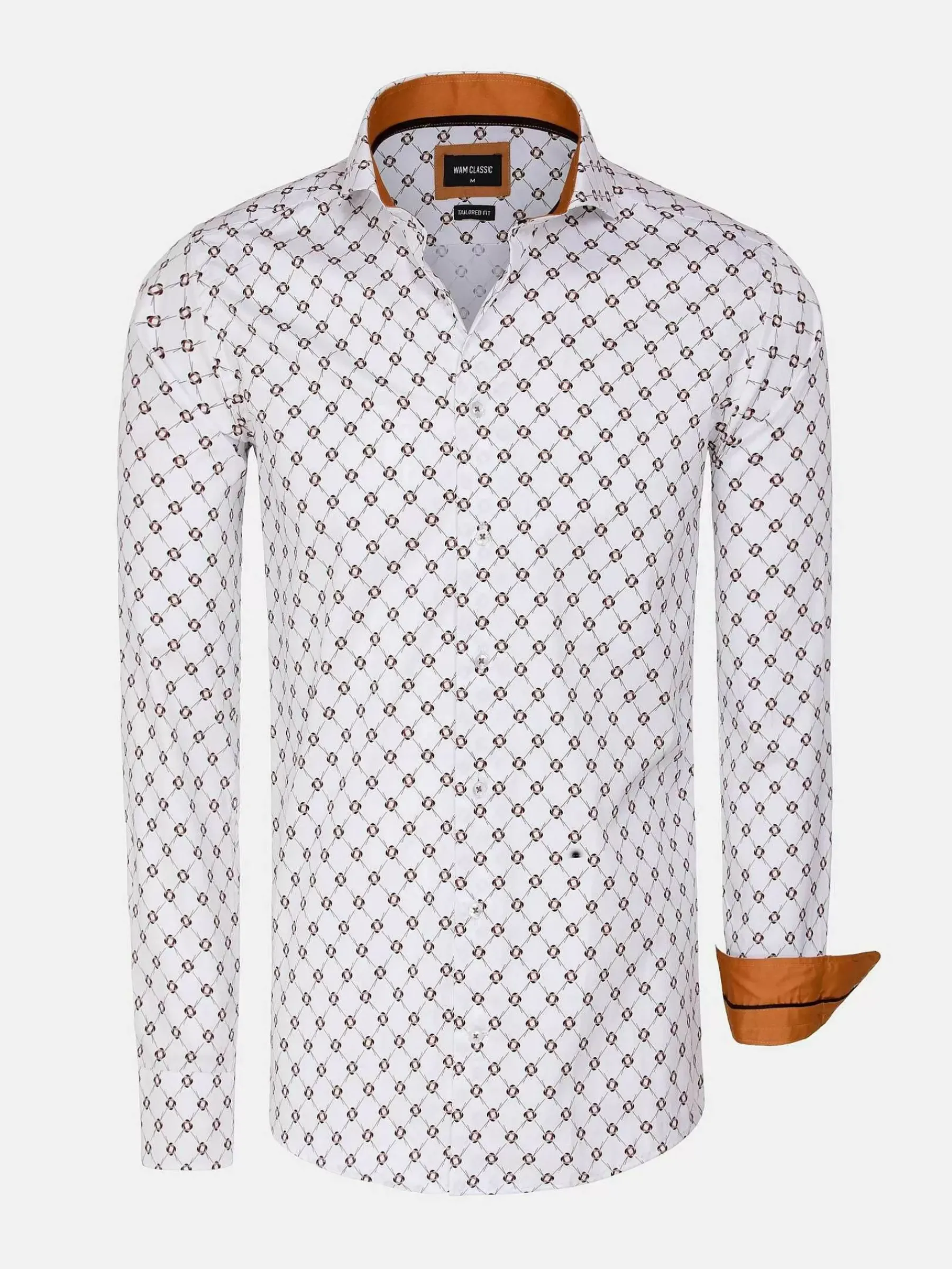 Wit Overhemd Met Een Fraai Motief Wat Het Model Een Speels Karakter Geeft. Dit Overhemd Is Door De Neutrale Kleur Makkelijk Te Combineren En Zowel Te Dragen Op Kantoor Als In De Vrije Tijd. Gemaakt Van Het Beste Materiaal Voor Jarenlang Plezier.