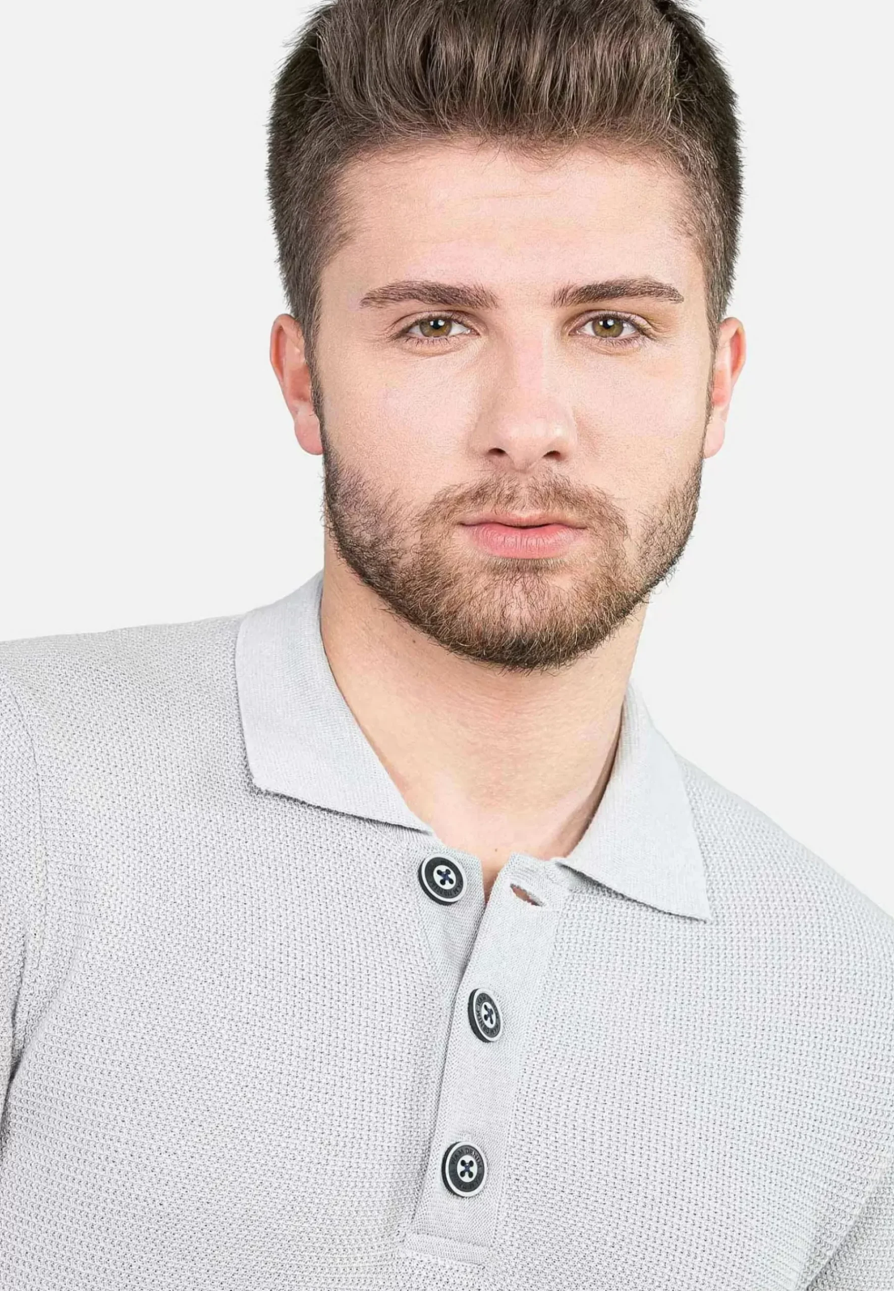 Grijze Sweater Met Geribde Mouwen. Dit Model Heeft Een Knoopsluiting Met Zwarte Stiksels. Op De Linkermouw Zit Een Klein Embleem Gestikt. Door De Neutrale Kleur Is Deze Sweater Met Praktisch Alles Te Combineren.
