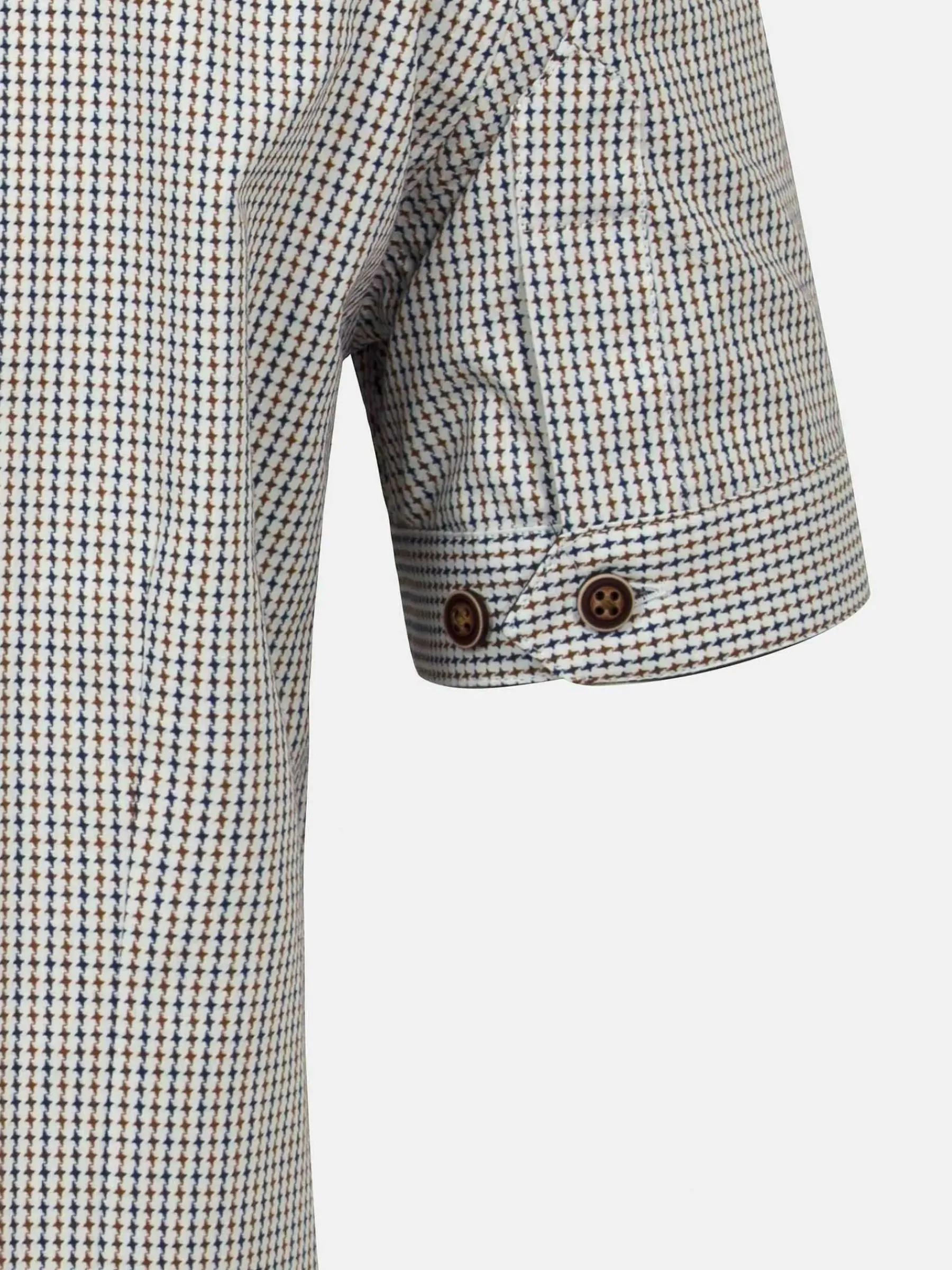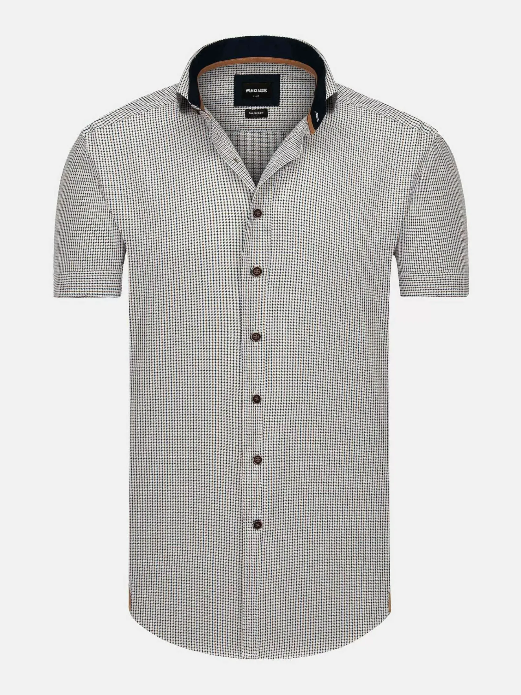 Wam Denim Asher Tailored Fit White Navy Overhemd| Overhemd Korte Mouwen