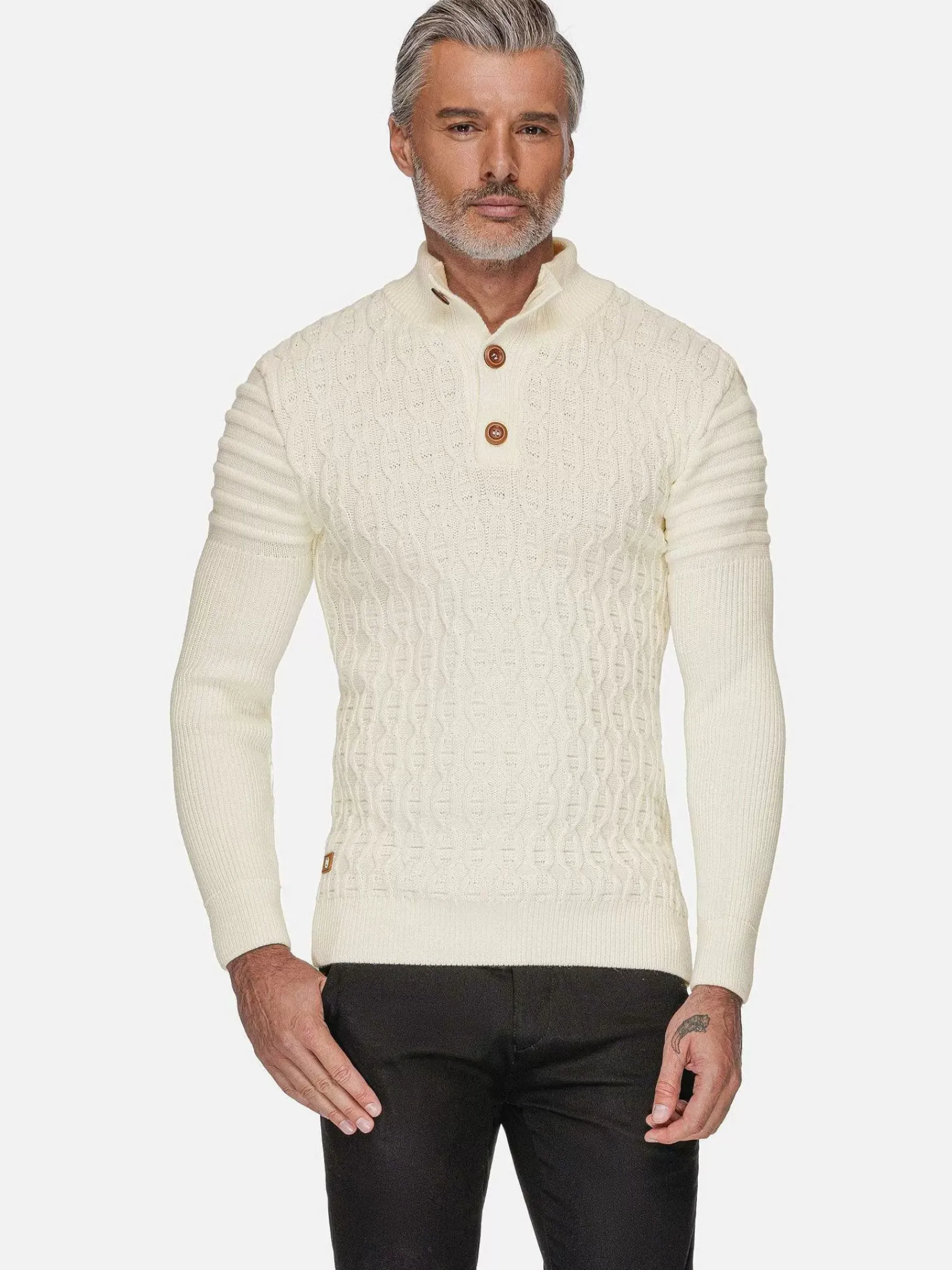 Een Het Hele Jaar Door Ademende Trui. Het Elitepatroon In De Stof Geeft Deze Trui Een Unieke Uitstraling. De Hoog Uitgesneden Kraag Geeft Uw Hals Voldoende Bedekking, En De Geribde Boorden Houden De Winterwind Buiten. Dit Veelzijdige Stuk Is Elegant Genoeg Om Comfortabel Onder Een Topjas Te Zitten, Maar Casual Genoeg Om Perfect Te Combineren Met Denim Voor Gezellig Weer.