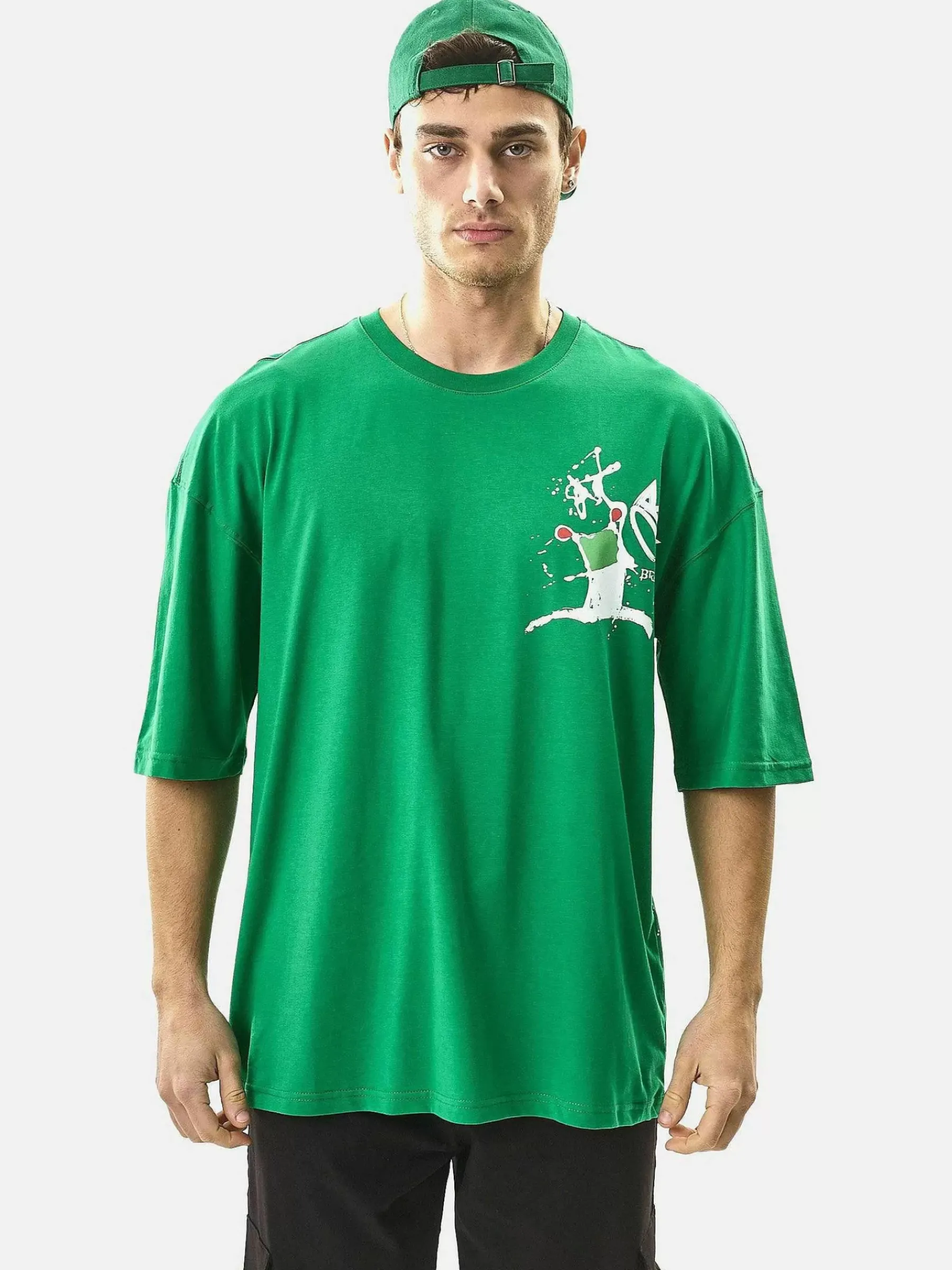 Brodie Green T-Shirt. Met Korte Manchetten, Een Geribde Ronde Hals En Een Unieke Print Op Zowel De Voor- Als Achterkant Is Dit T-Shirt Van 100% Zacht Katoen Een Must-Have Voor Elke Gelegenheid.