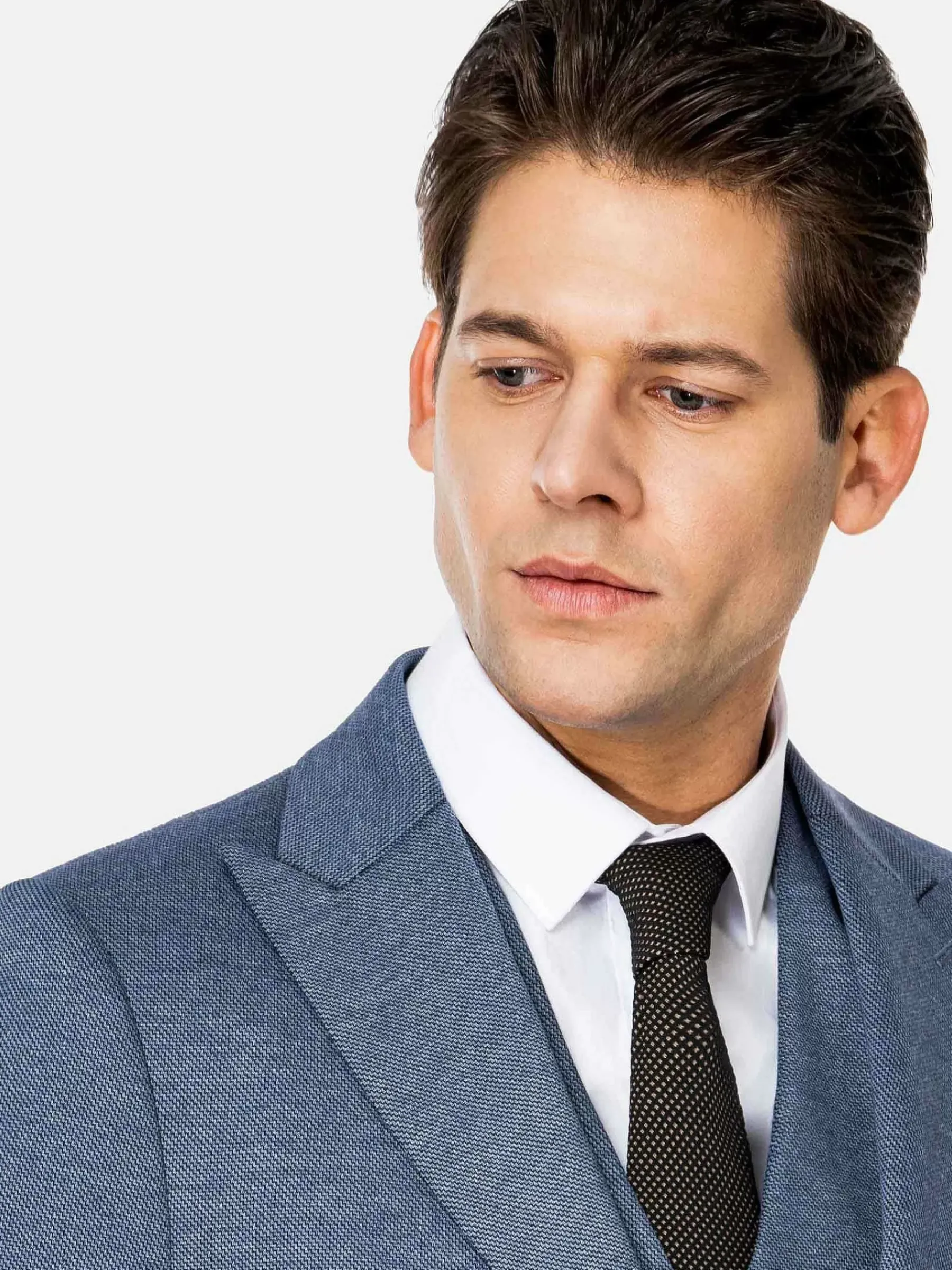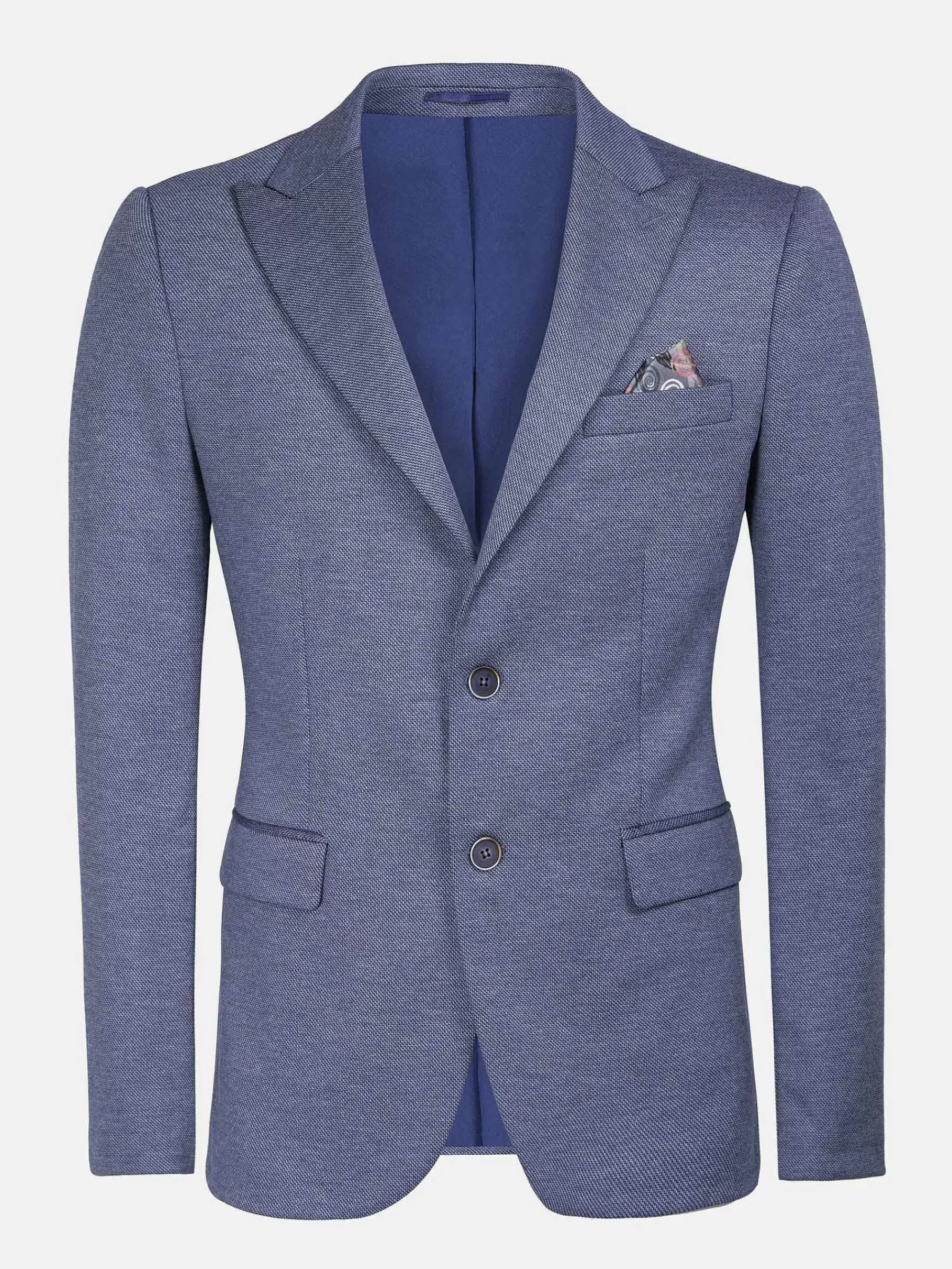 Licht Getailleerd Colbert Met Brede Revers In Een Mooie Kleur Blauw. Dit Model Heeft Twee Knoopsluitingen En Twee Klepzakken. Past Goed Op Een Pantalon Met Een Overhemd, Maar Kan Ook Gedragen Worden Op Een Jeans Voor Een Wat Vlottere Outfit. De Borstzak Van Het Jasje Kan, Wanneer Deze Naar Buiten Wordt Gedraaid, Worden Gepresenteerd Als Een Extra Accessoire In De Vorm Van Een Pochet Van 100% Polyester.