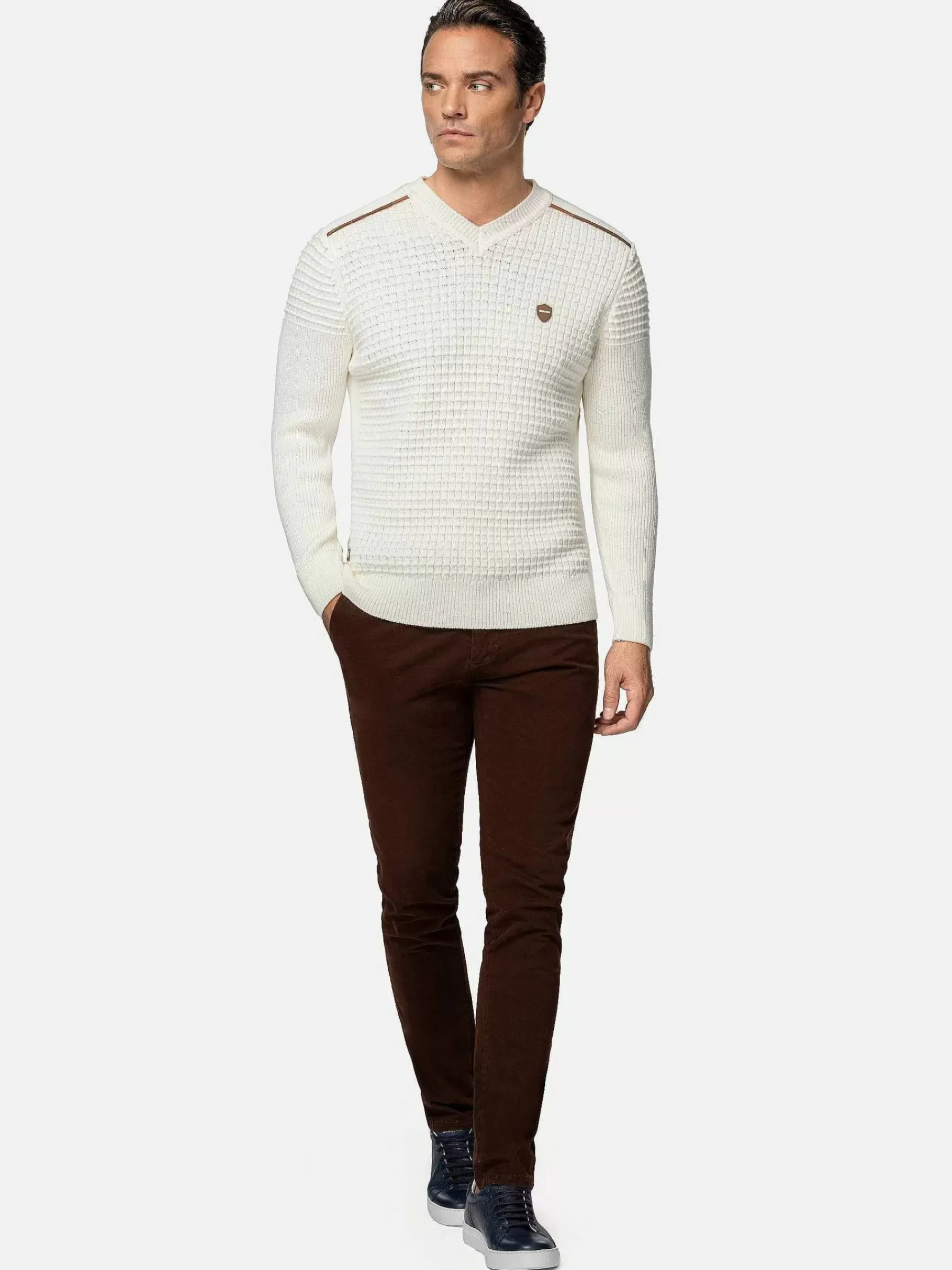 Ontdek Gezellige Knitwear! Onze Slim Fit Off-White Knitwear Met V-Hals Combineert Moeiteloos Comfort En Mode, Waardoor Het De Ideale Keuze Is Voor Elke Gelegenheid. Of Je Nu Naar Een Casual Uitje Gaat Of Naar Een Speciaal Evenement, Deze Knitwear Is Je Perfecte Metgezel. Ervaar De Mix Van Zachtheid En Trendyheid. Pak De Jouwe Nu En Stap Uit In Stijl.
