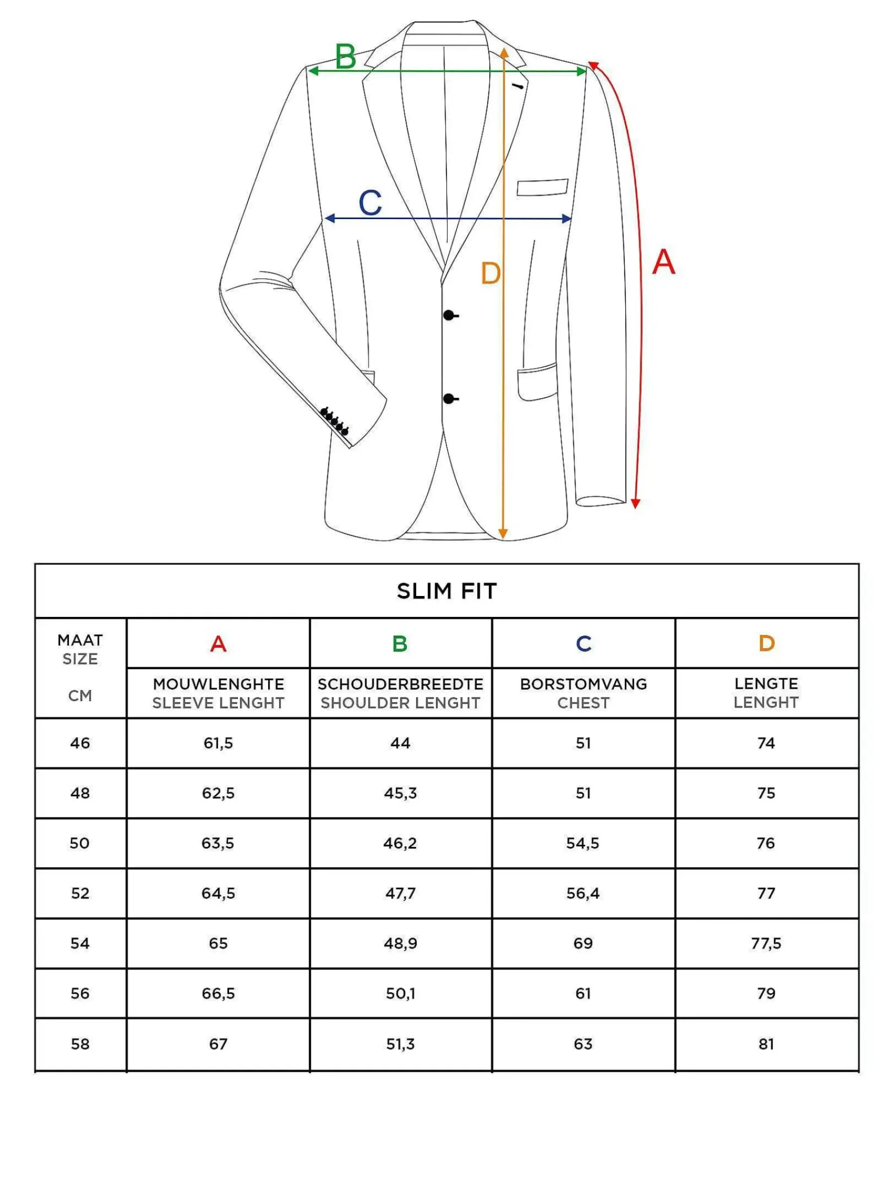 | Maat | 44, 46, 48, 50, 52, 54, 56, 58 |