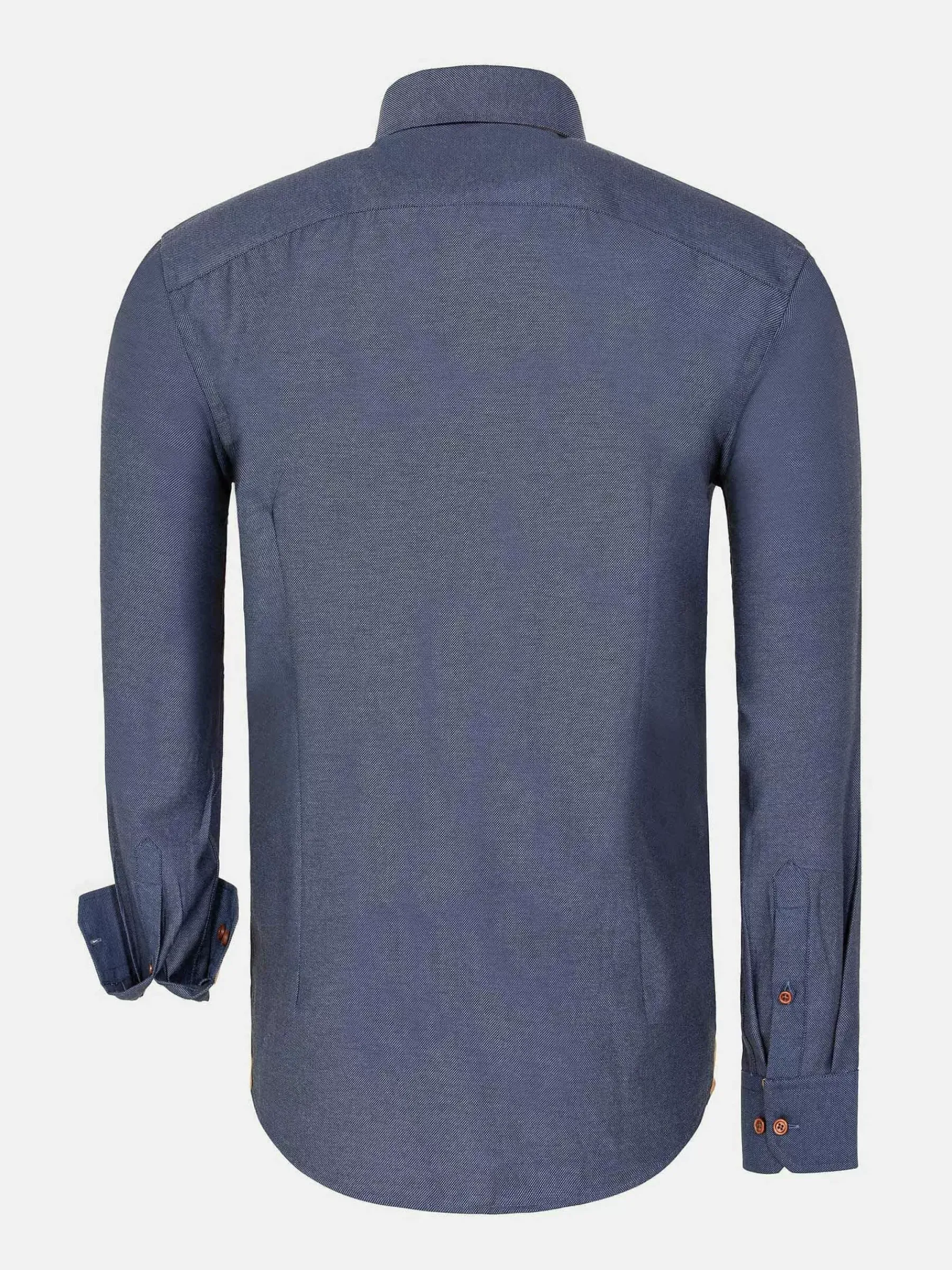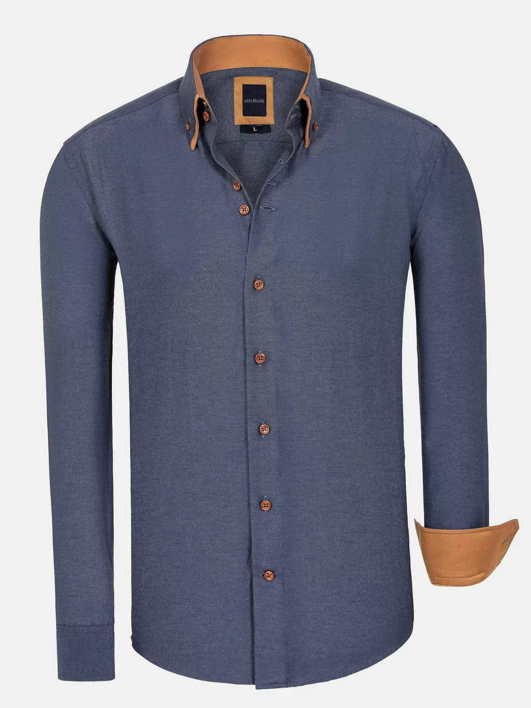 Ons Herenoverhemd Met Dubbele Kraag In Dark Indigo Met Lange Mouwen Heeft Een Prachtig Ontwerp Dat Een Vleugje Elegantie Toevoegt Aan Je Ensemble. De Dubbele Kraag Verbetert De Algehele Look, Waardoor Het Een Statement Stuk Is Voor Elke Gelegenheid. Geef Uitdrukking Aan Je Individualiteit Met Dit Geraffineerde Overhemd.