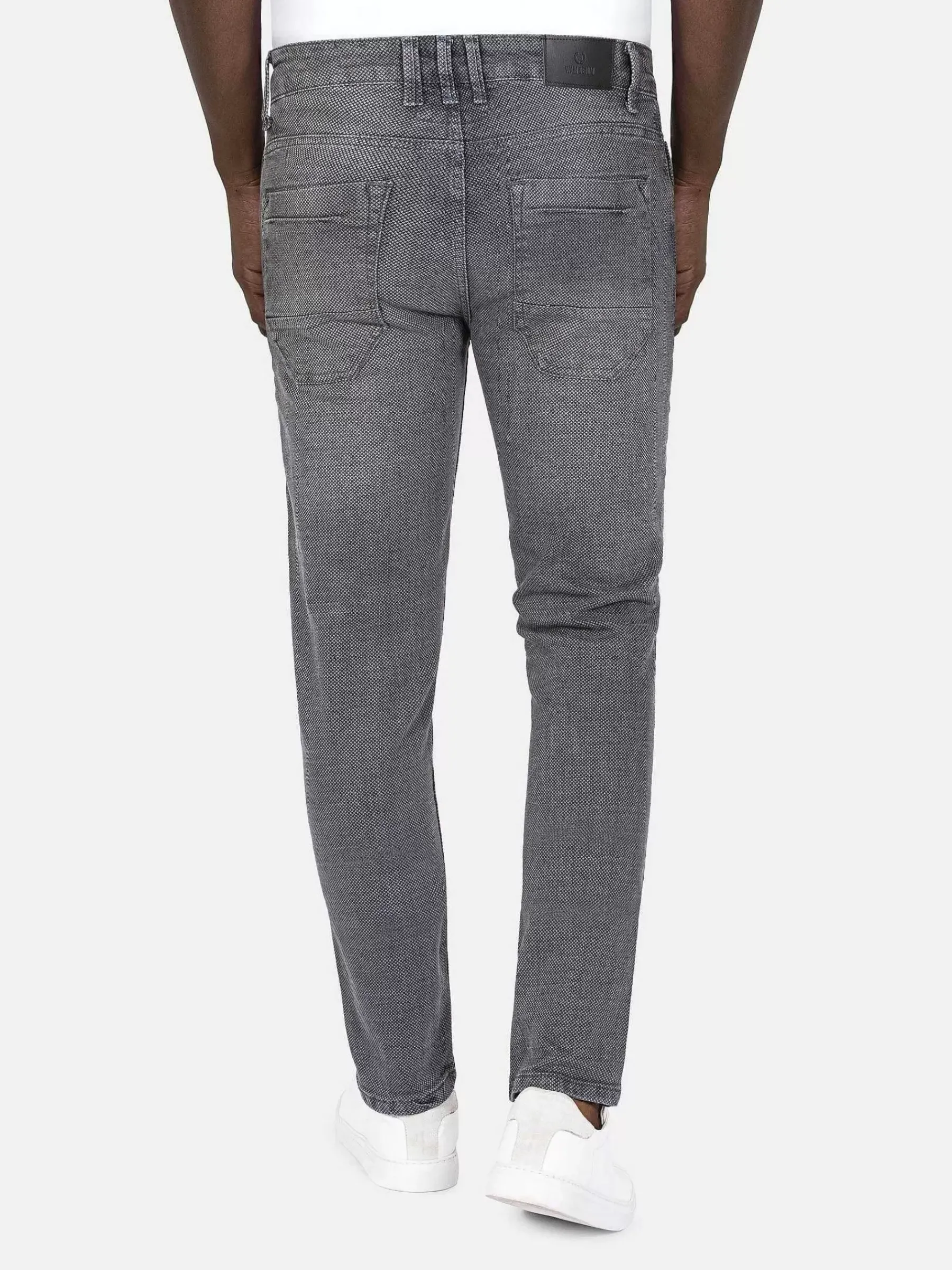 Strakke Jeans Met Rijke Textuur Op De Stof, Grijs Gestikt En Met Een Elegante Look. De Jeans Heeft Een Rits, Twee Voorzakken, Twee Achterzakken En Een Embleem Op De Taille. Met Veel Items Te Combineren. Zowel Voor Een Nette Outfit Te Gebruiken Als Een Casual Outfit.
