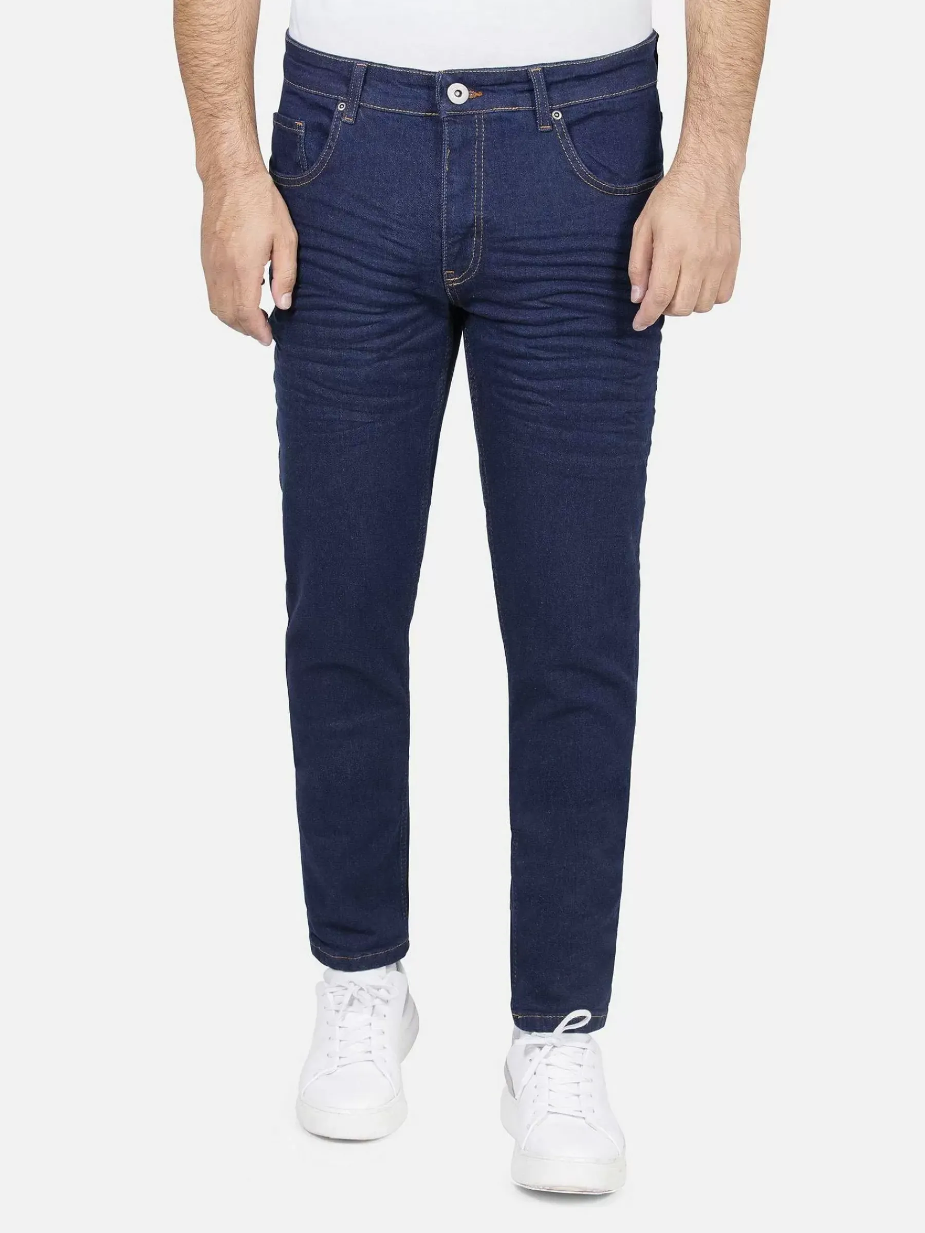 Avery Donkerblauwe Slim Fit Jeans Met Vijf Zakken Denim Constructie Met Smalle Pijpen En Een Normale Lengte. Gemaakt Van Katoen En Gemengd Met Elastaan ??Voor Meer Comfort, Aangevuld Met Gelige Stiksels Voor Een Modernere Look.
