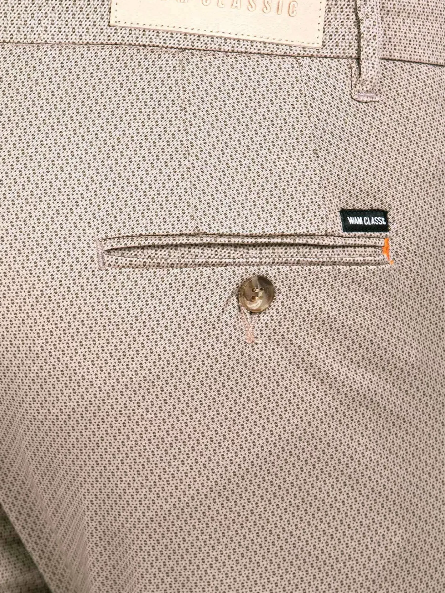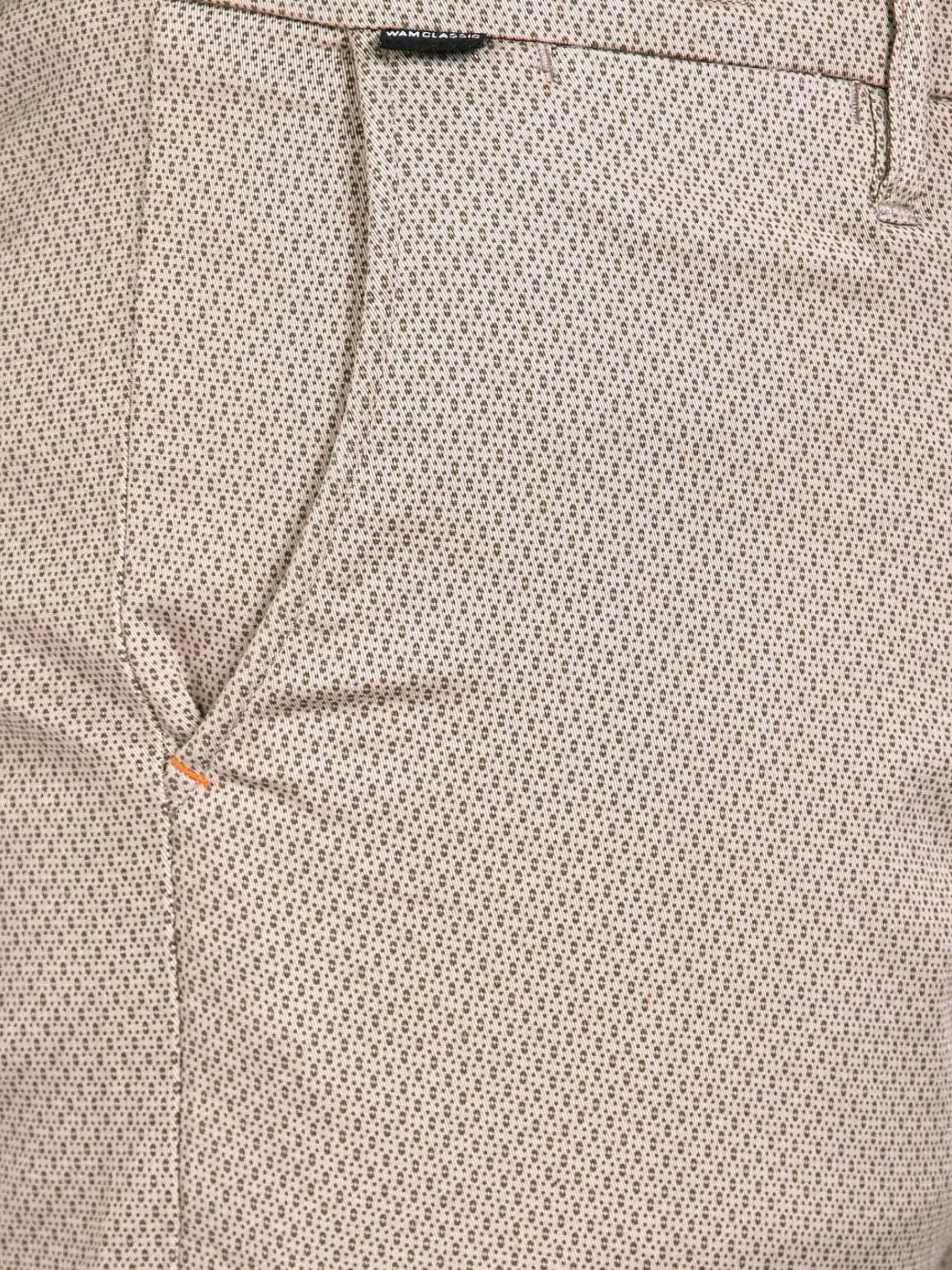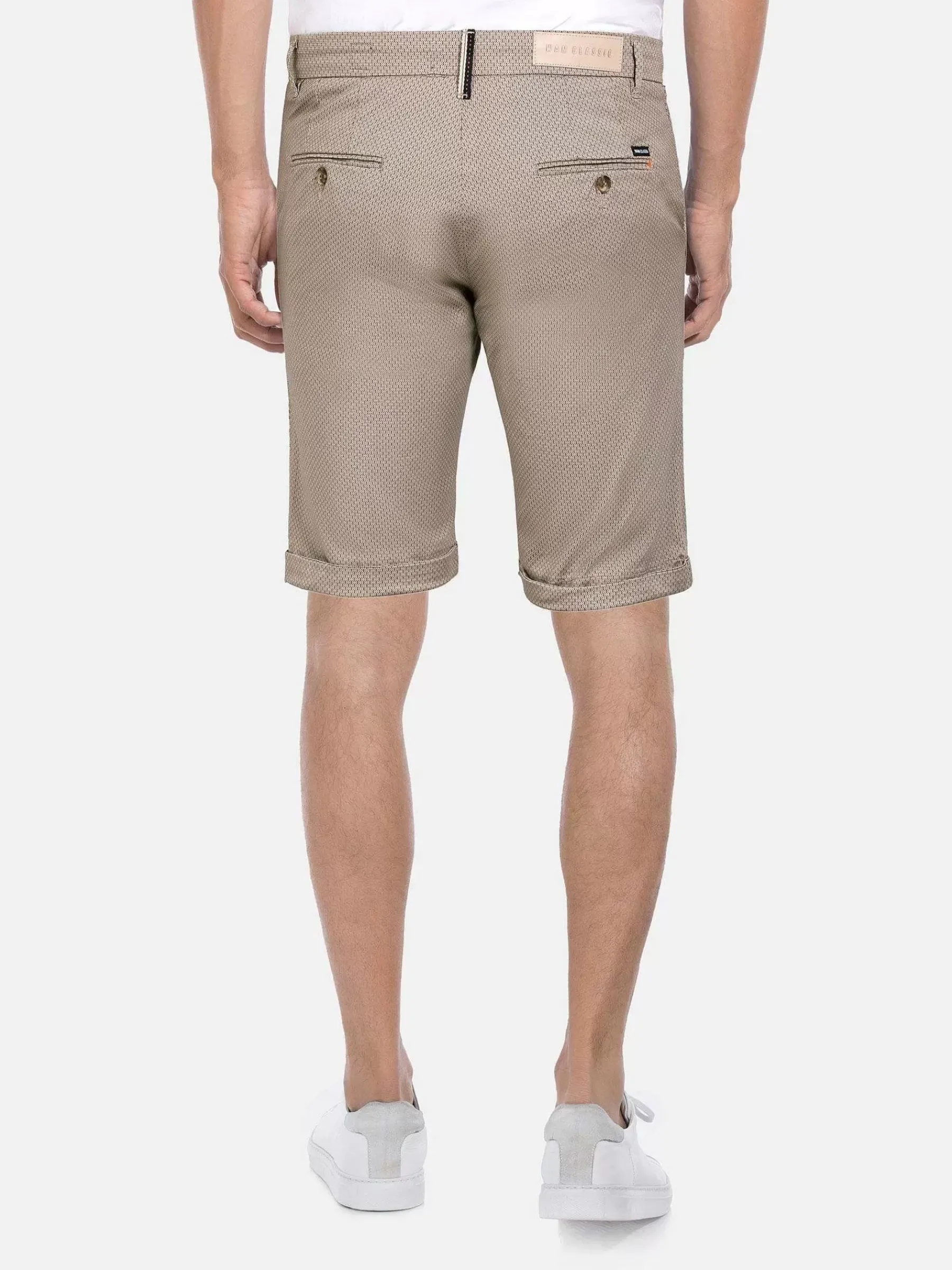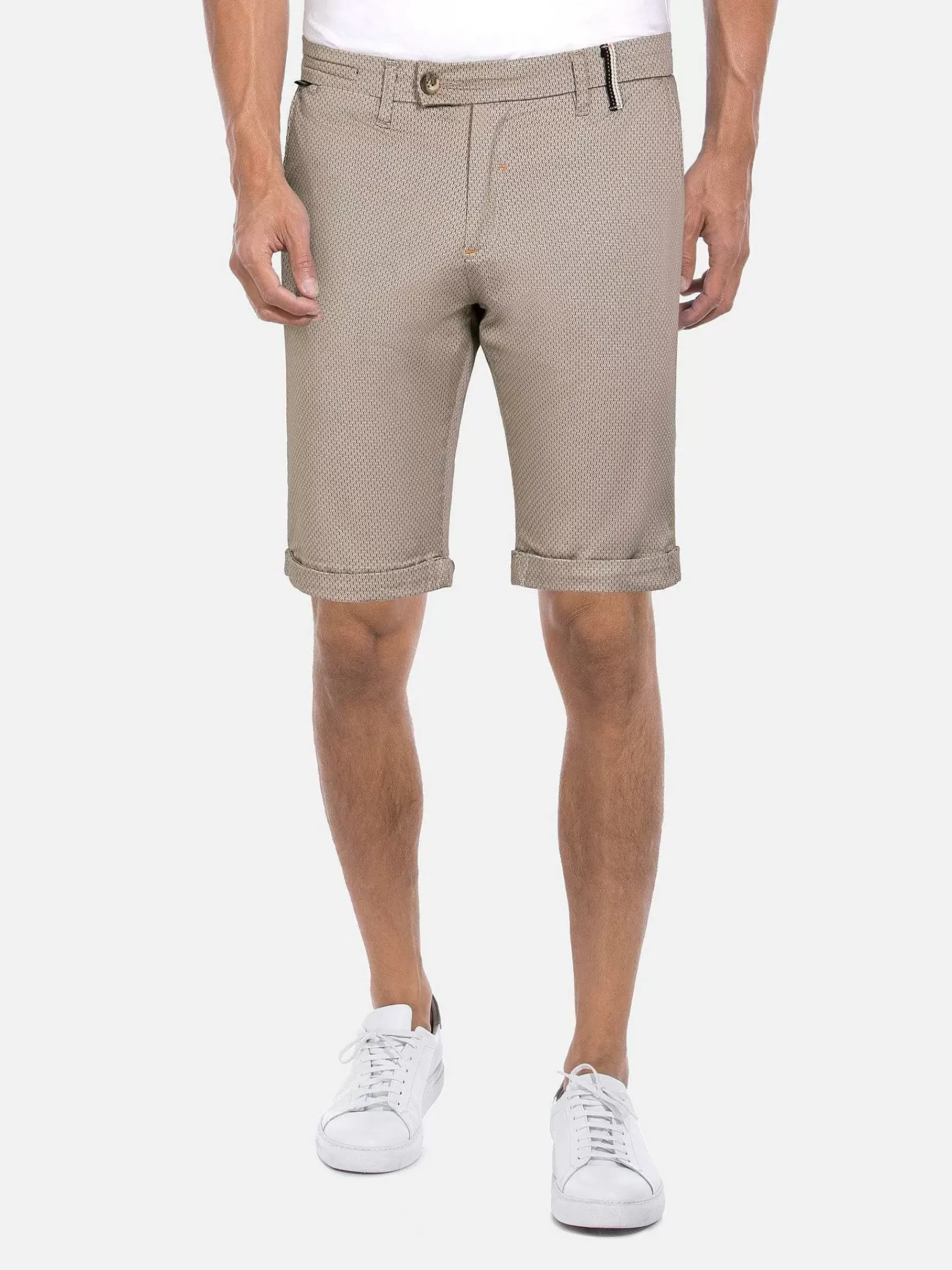 Een Modieuze Short In Een Mooie Beige Kleur. Dit Model Heeft Een Heel Fijn Patroon Van Donkere Stippen. De Broek Heeft Twee Steekzakken En Twee Achterzakken Met Een Knoopsluiting. Dit Model Is Fraai Afgewerkt Met Omgeslagen Broekspijpen En Een Embleem Op De Taille.