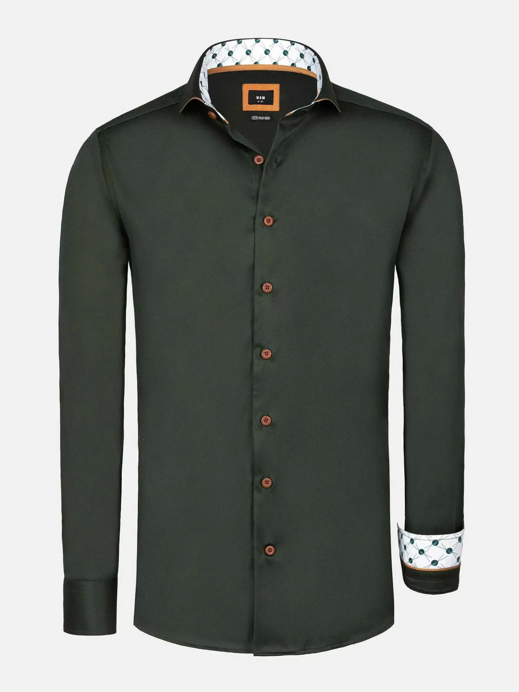 Wam Denim Lance Solid Dark Green Overhemd Lange Mouw| Overhemd Lange Mouwen