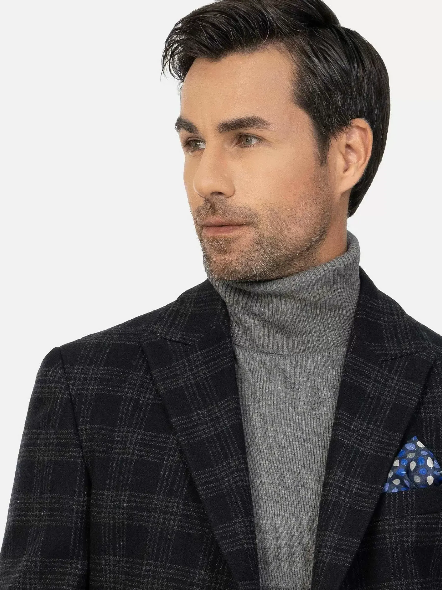 Stijlvolle Trenchcoat Met Ruitpatroon. Deze Jas Heeft Een Mooie Donkerblauwe Kleur, Afgewerkt Met Grote, Blauwe Knopen. Dit Model Past Goed Op Een Pantalon, Maar Ook Op Een Nette Jeans. De Borstzak Van Het Jasje Kan, Wanneer Deze Naar Buiten Wordt Gedraaid, Worden Gepresenteerd Als Een Extra Accessoire In De Vorm Van Een Pochet Van 100% Polyester.