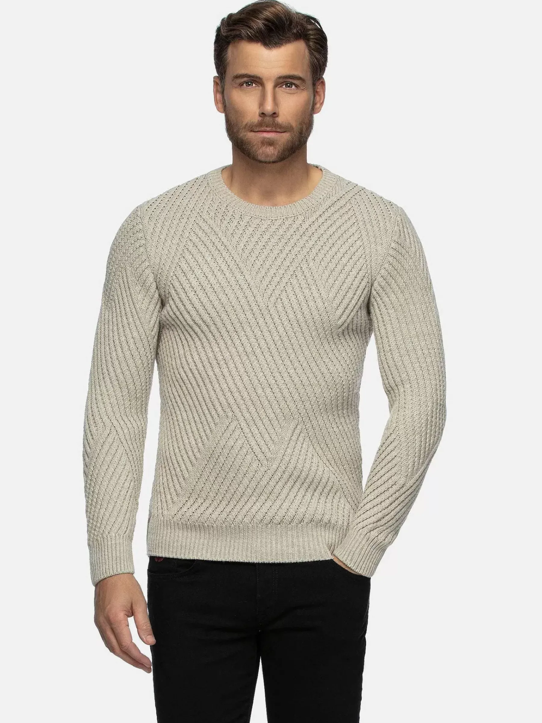 Stijlvolle Beige Trui, Gemaakt Van Premium Acryl Met Een Mooi Design Van Wafelstructuur. De Trui Met Ronde Hals Is Niet Alleen Warm, Maar Draagt Ook Heel Comfortabel. De Stijldetails Zijn Onder Meer Een Geribbelde Kraag En Raglanmouwen. Makkelijk Te Combineren En Het Hele Jaar Door Te Dragen.