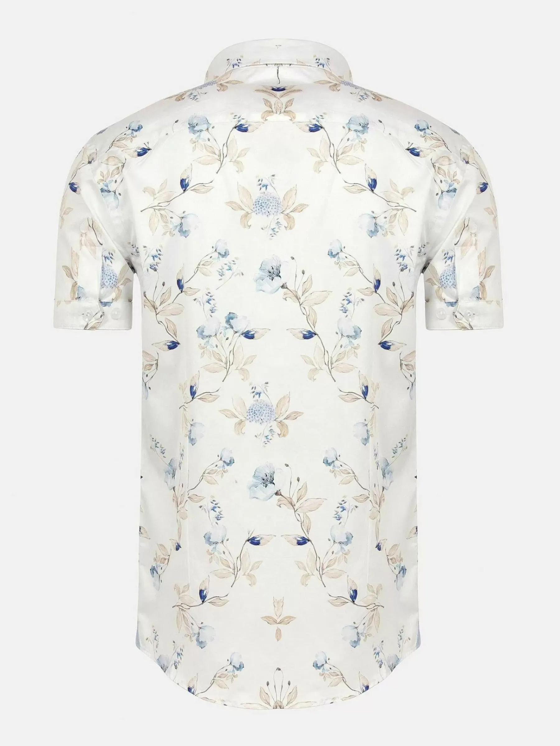 Primrose Tailored Fit Wit Overhemd. Met Zijn Cutaway Kraag, Bloemenprint En Stretchstof Biedt Dit Overhemd Zowel Comfort Als Elegantie. Perfect Voor Elke Gelegenheid.