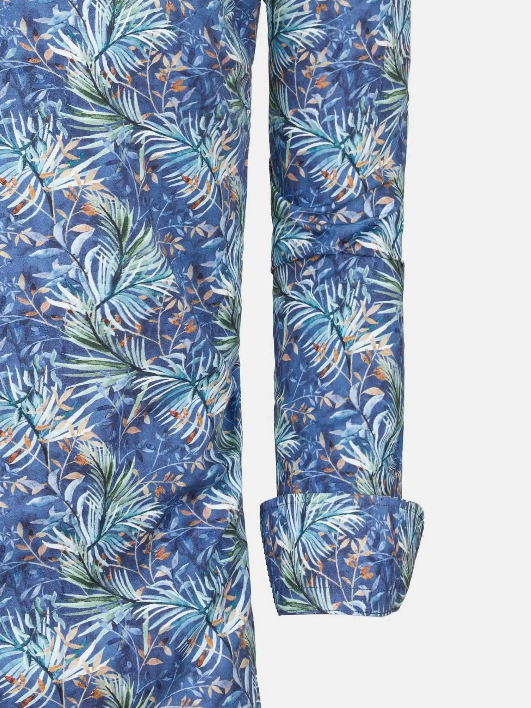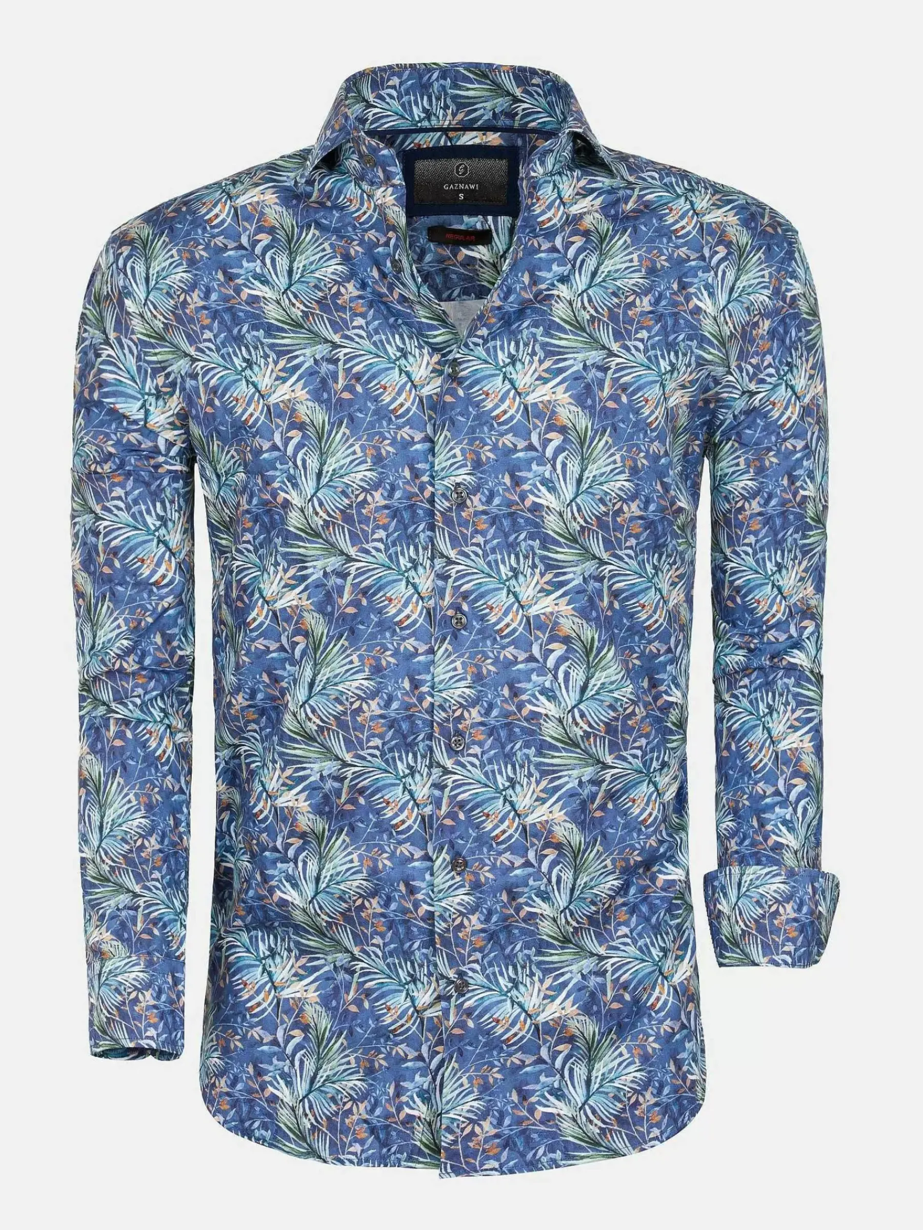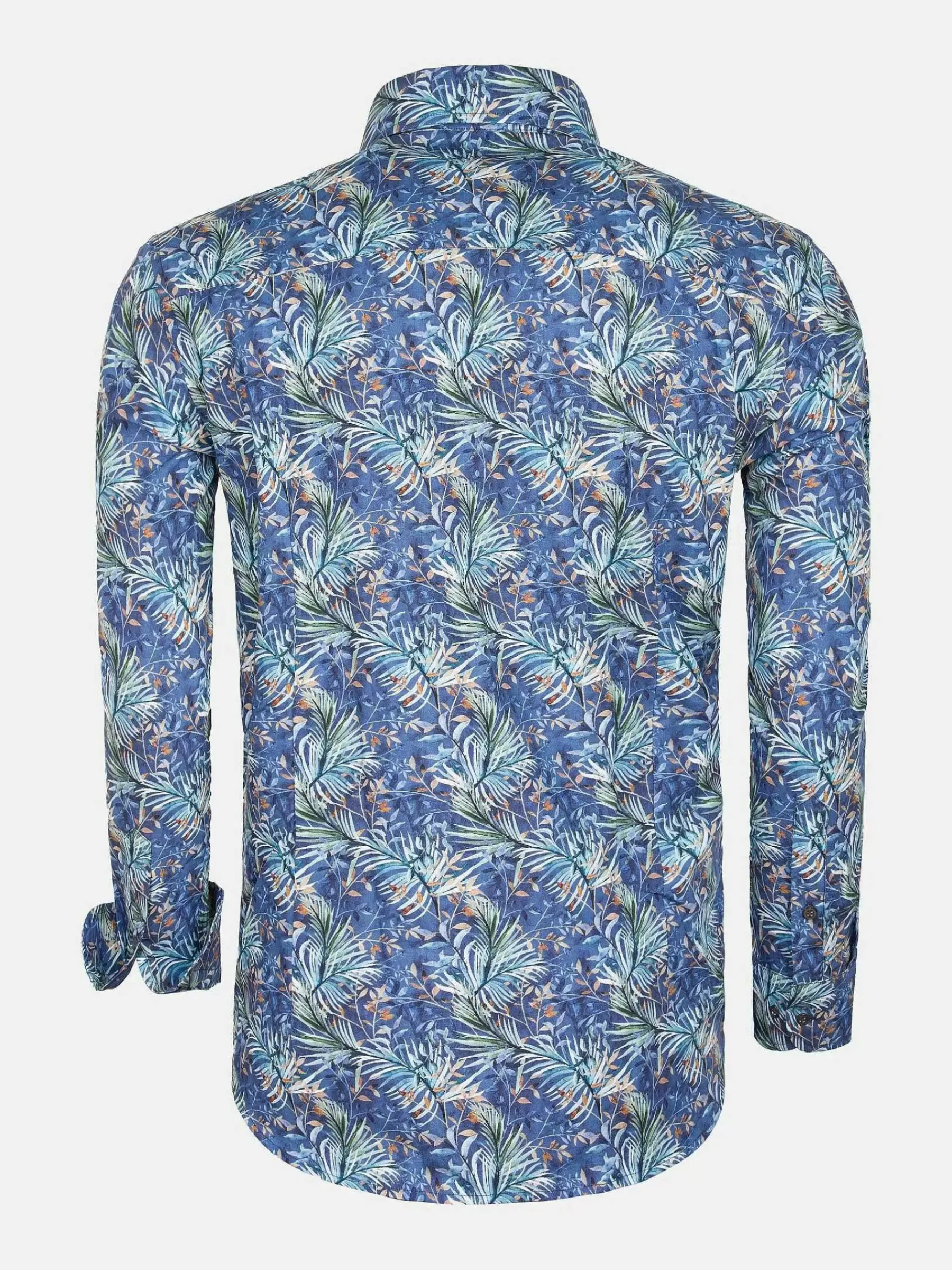 Kleurrijk Overhemd Met Bloemenprint. Dit Model Loopt Onder Aan Rond Af. Het Overhemd Heeft Een Mooie Kleurencombinatie Van Wit, Groen, Bruin En Blauw Kleurige Bloemenbladen. Past Goed Op Een Effen Jeans.