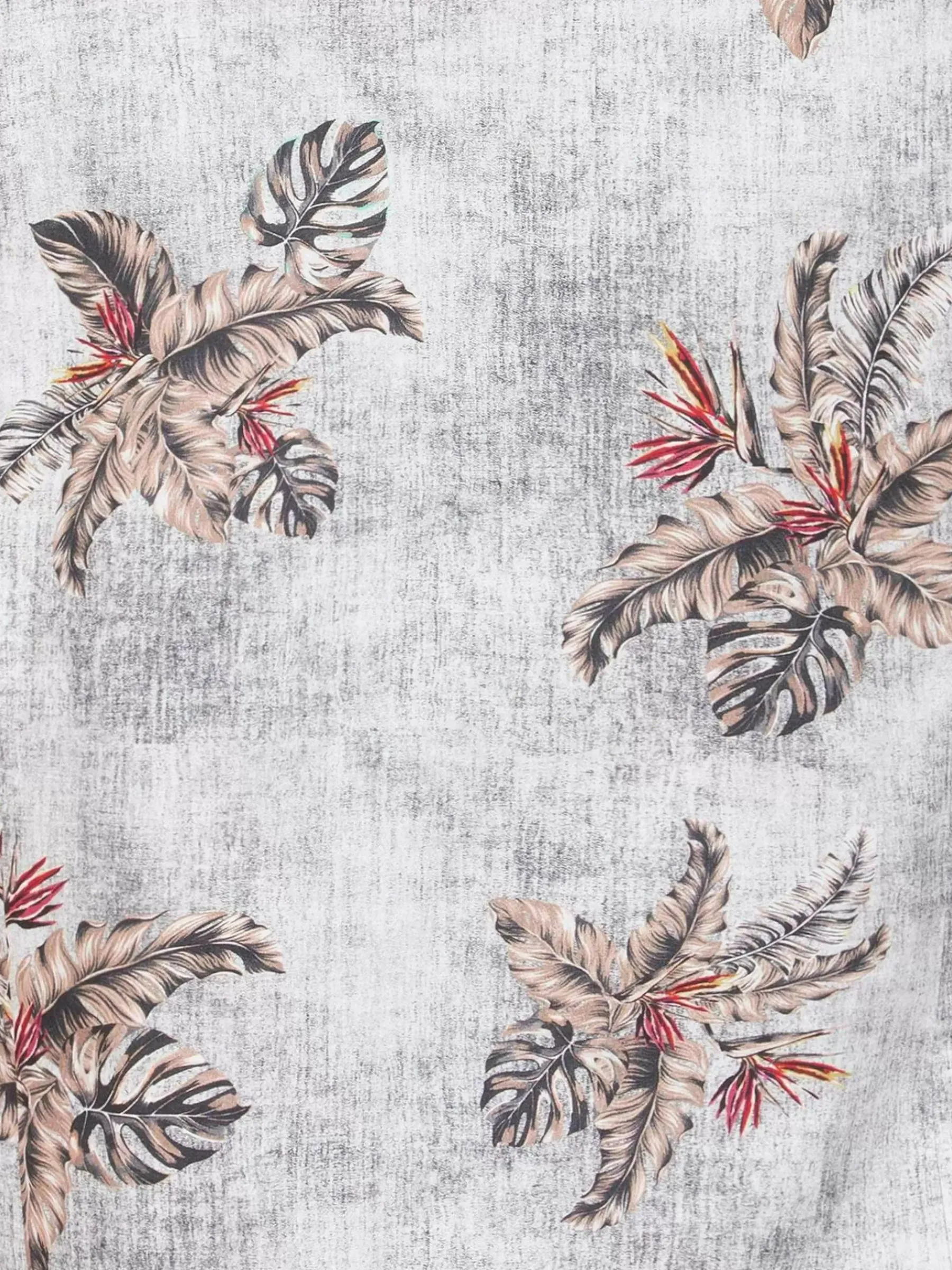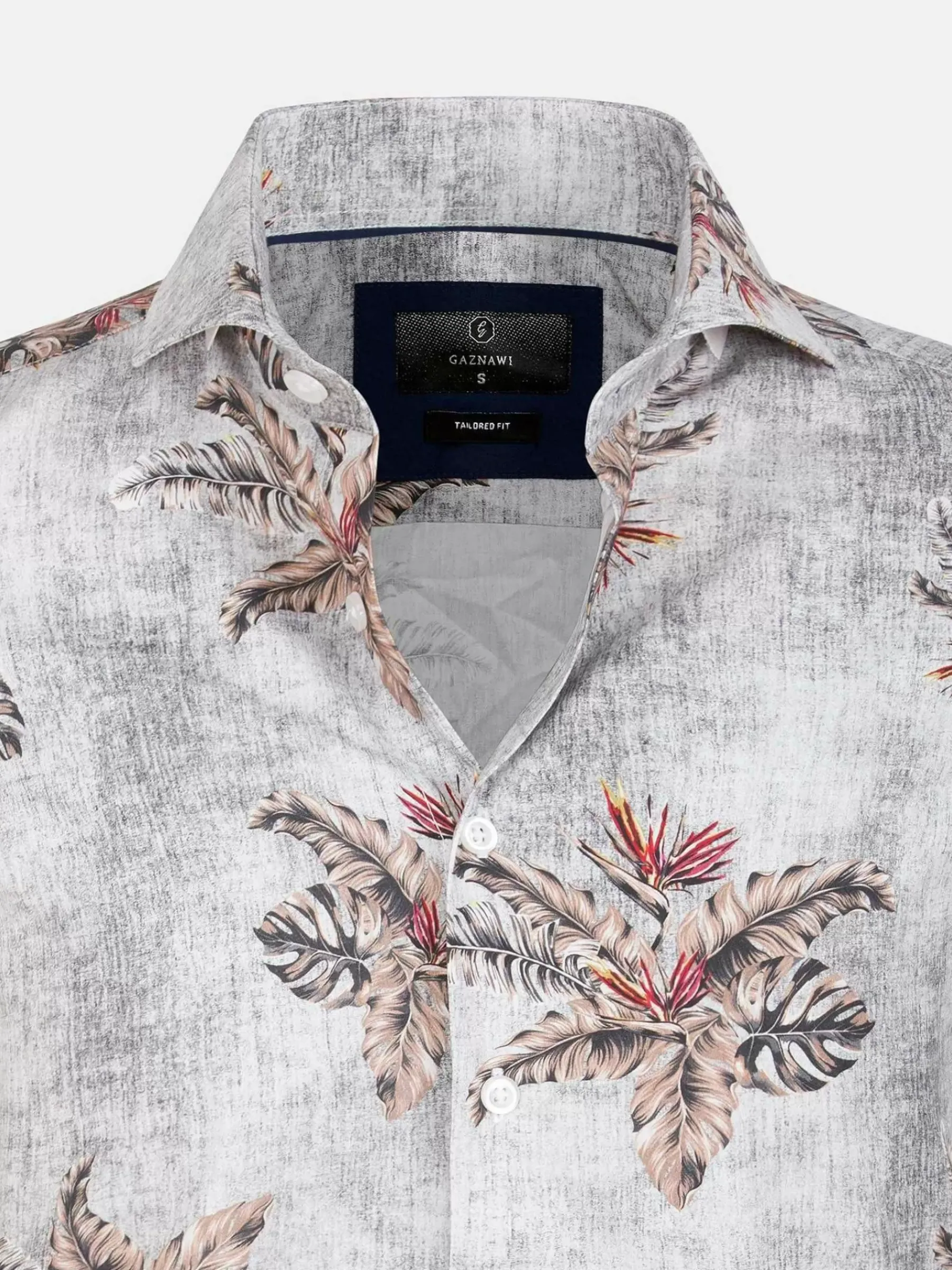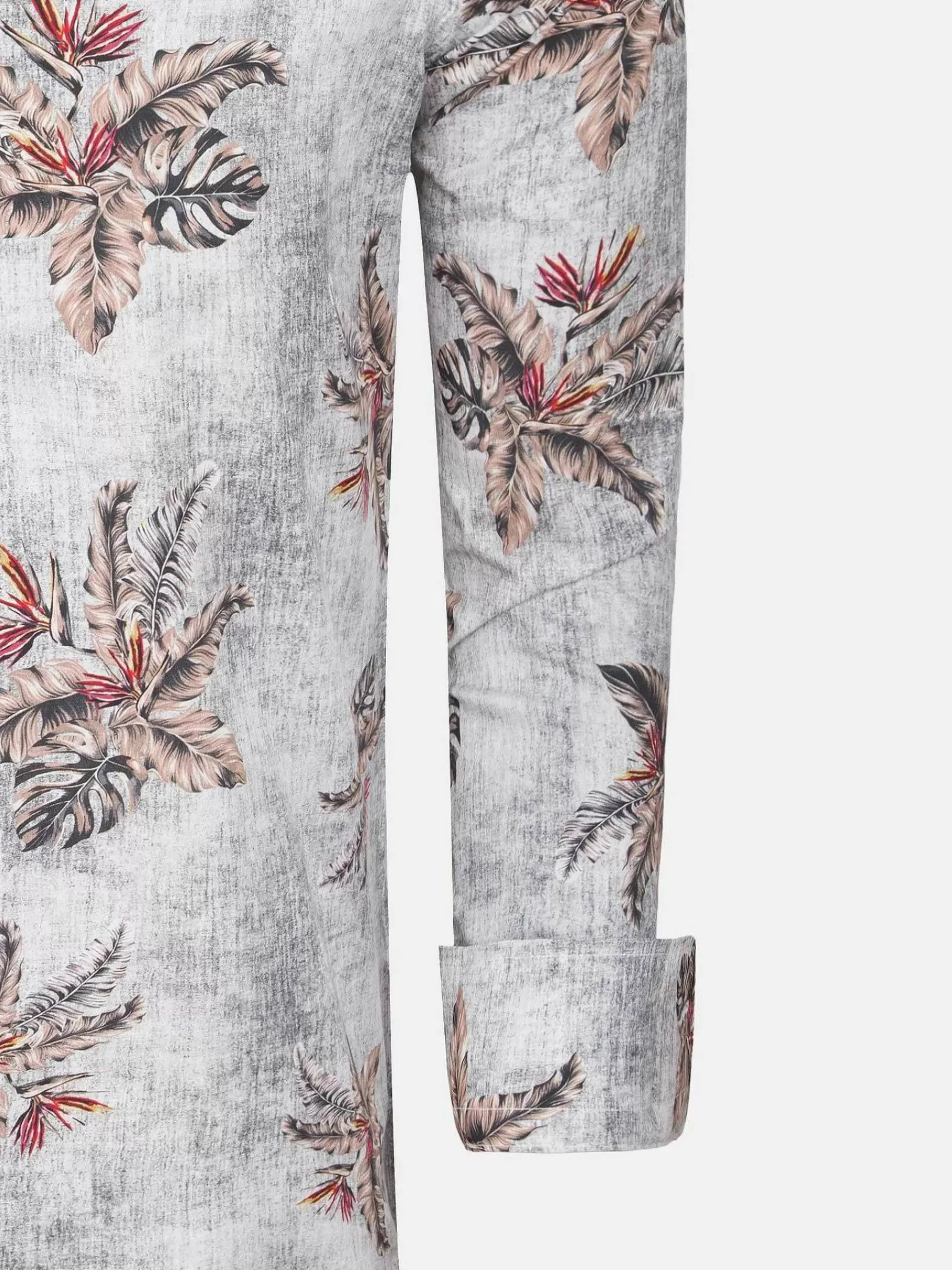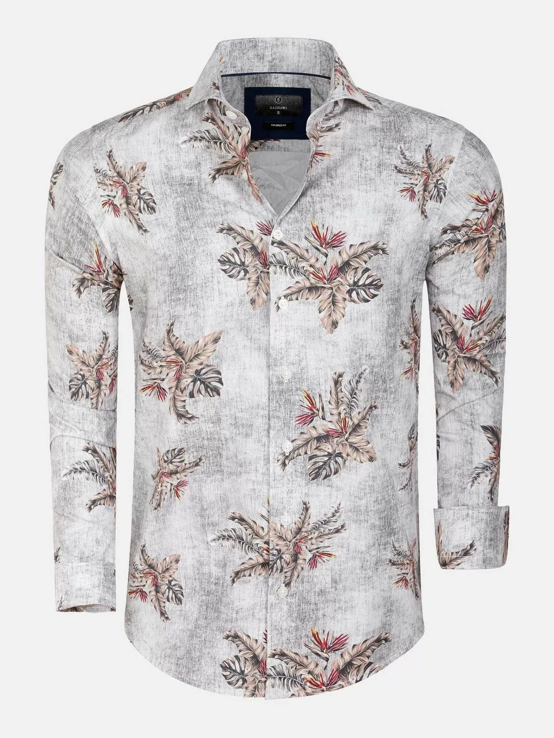 Wit – Donkerbruin Overhemd Met Lange Mouwen En Knoopsluiting. Bloemenprint Met Een Mooie Combinatie Van Zwarte, Rode En Bruin Kleurige Bloemen.
