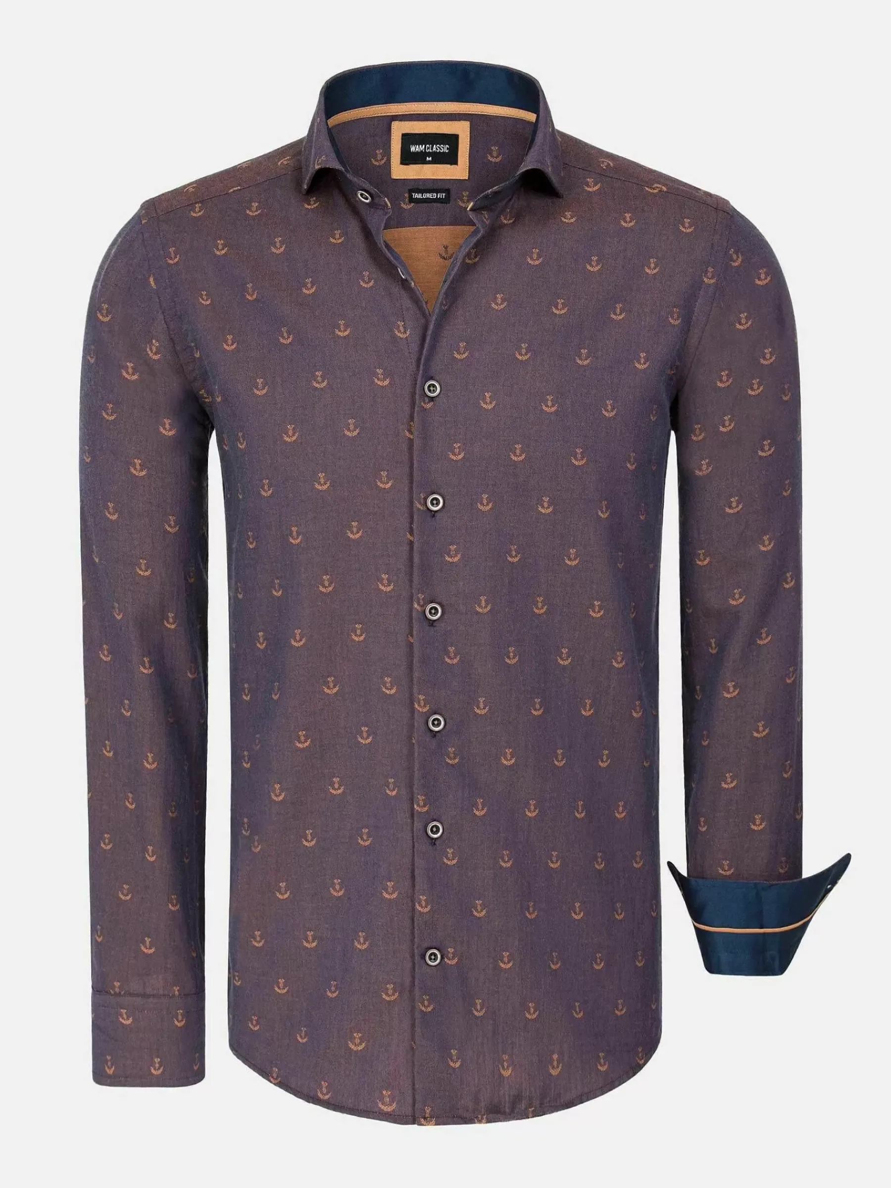 Wam Denim Overhemd Lange Mouw 75674 Cormes Navy| Overhemd Lange Mouwen