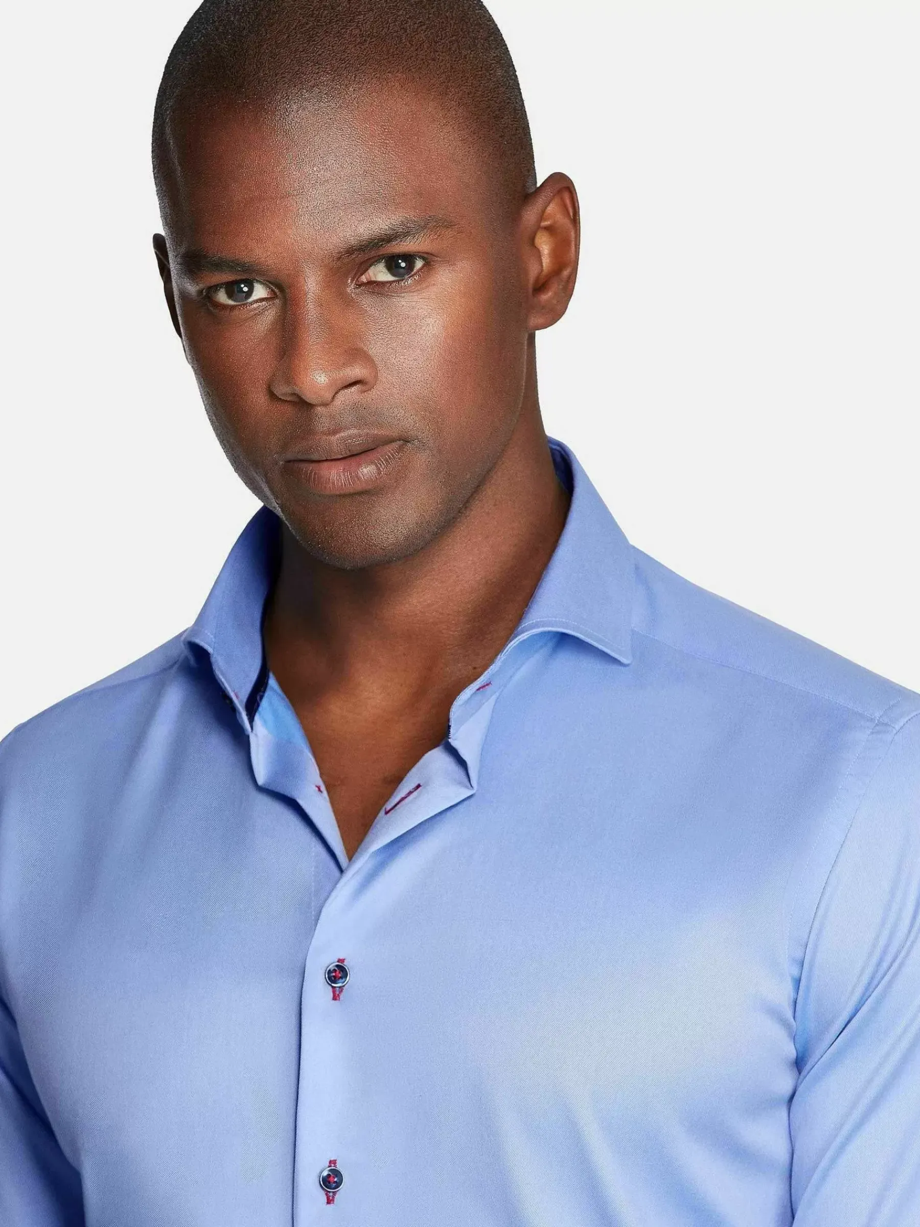 Mooi Lichtblauw Gekleurd Overhemd Met Een Chique Uitstraling. Het Overhemd Is Ideaal Voor Kantoor Om In Combinatie Te Dragen Met Een Pantalon, Maar Staat Natuurlijk Ook Mooi Op Een Jeans Voor Een Wat Lossere Outfit. Dit Model Loopt Van Onderen Rond Af En Is Gemaakt Van Zuiver Katoen.