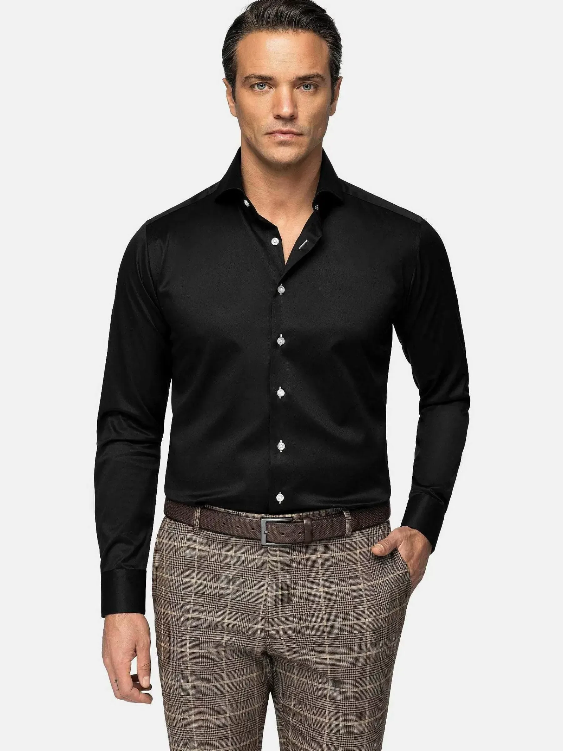 Zwart Overhemd Met Een Cutaway Kraag. De Glans Geeft Het Overhemd Een Mooie Uitstraling. Vervaardigd Van Katoen. Dit Licht Getailleerde Model Heeft Een Perfecte Pasvorm. Perfect Voor Kantoor Of Vrije Tijd. Dit Overhemd Is Ook Verkrijgbaar In Het Wit.