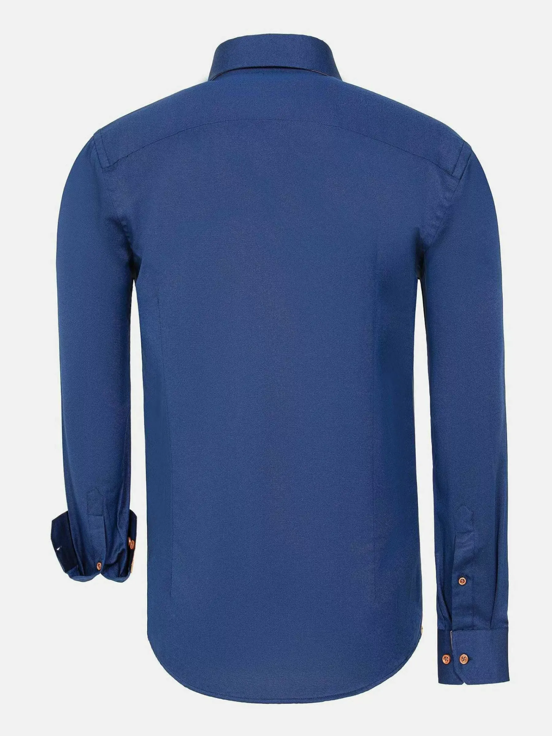 Wam Denim Overhemd Lange Mouwen<Flers Double Collar Navy Overhemd Lange Mouw