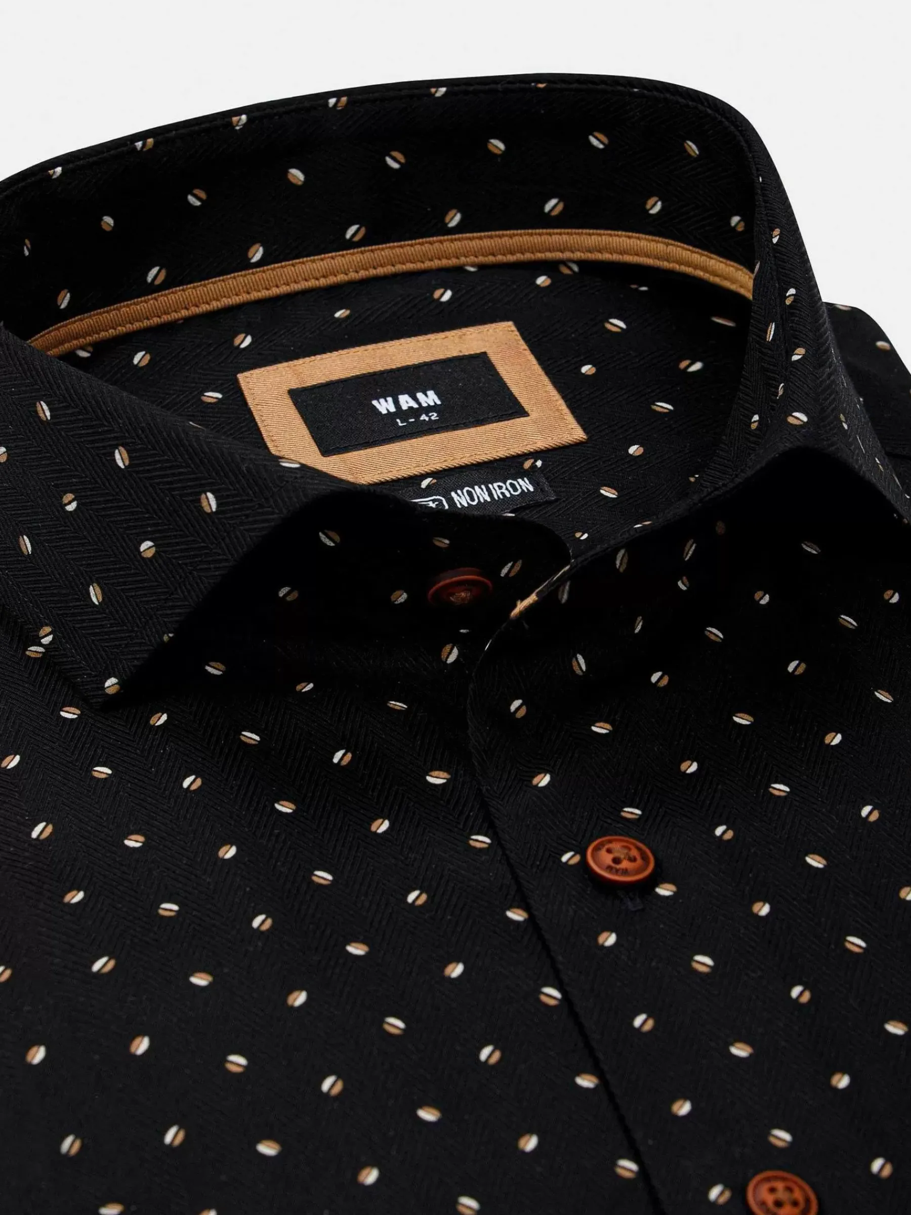 Wam Denim Overhemd Lange Mouwen<Verdantia Coffee Bean Pattern Black Overhemd Lange Mouw