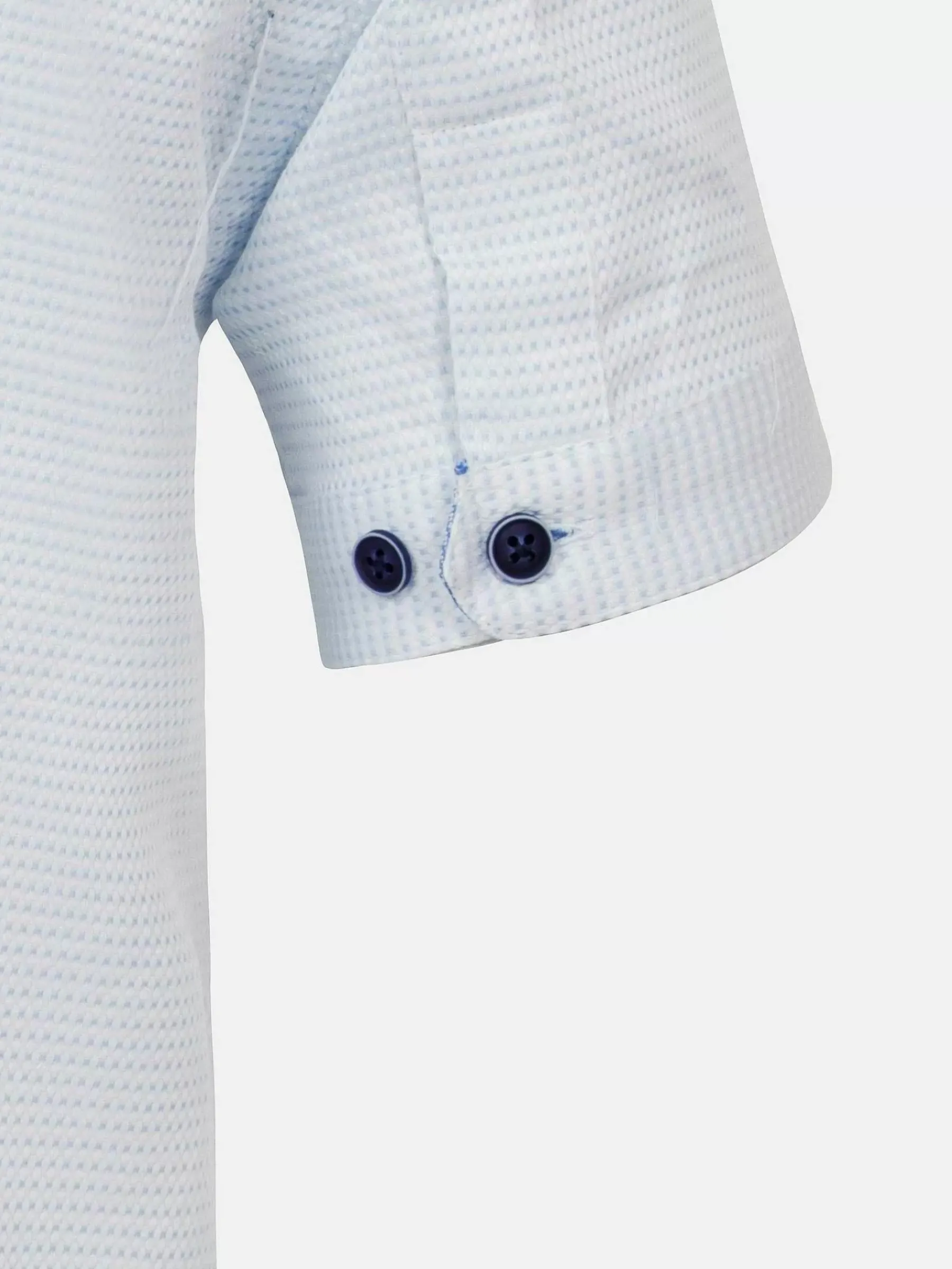 Owen Tailored Fit White Overhemd Korte Mouw.Met Een Gestroomlijnd Trailpatroon, Button-Down Ontwerp, Korte Mouwen, Knoopmanchetsluiting En Getailleerde Pasvorm. Combineer Moeiteloos Comfort En Verfijning Met Deze Essentiële Garderobe.