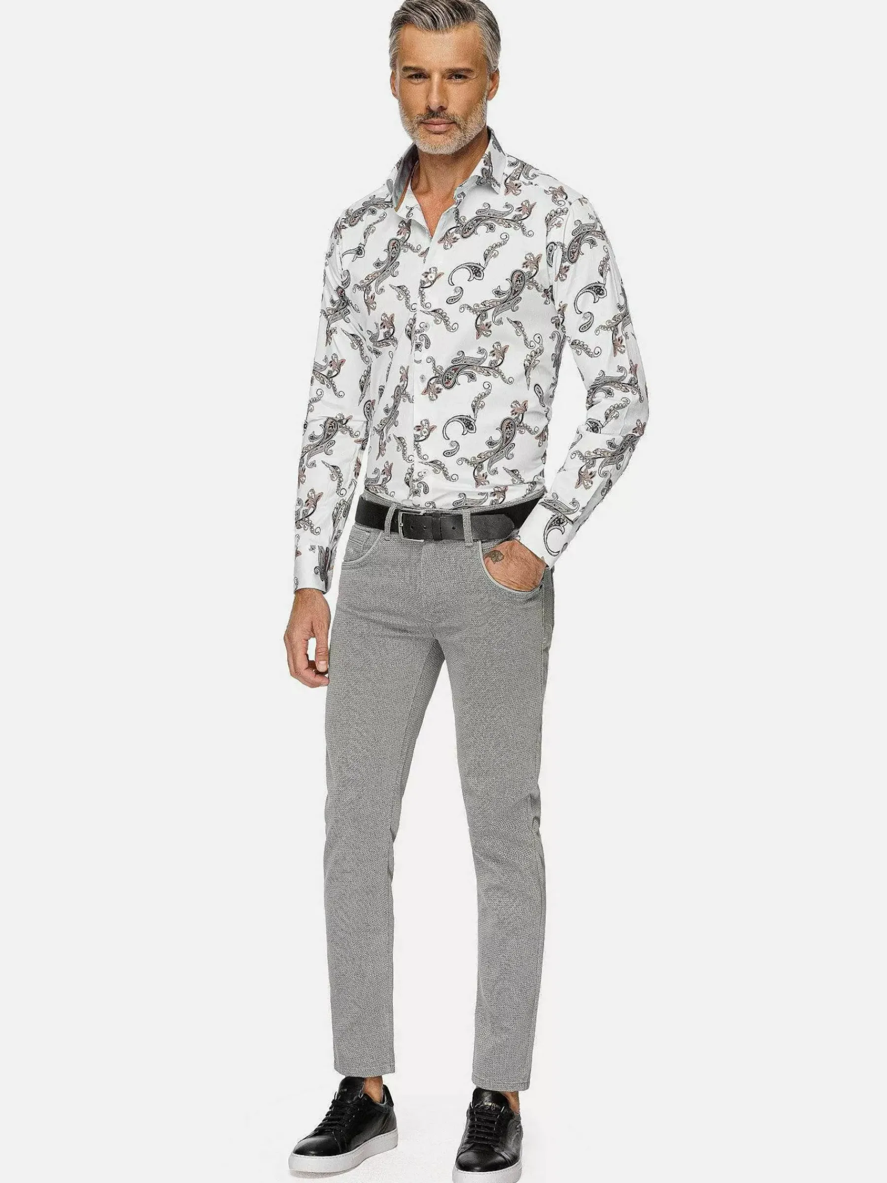 Paisley, Een Perfecte Mix Van Hedendaagse Elegantie En Tijdloze Charme. Het Verbluffende Witte Paisley Bloemenpatroon Straalt Verfijning Uit Die Werkelijk Ongeëvenaard Is. Het Ingewikkelde Bloemmotief Voegt Een Vleugje Verfijning Toe, Waardoor Het Een Veelzijdige Keuze Is Voor Elke Gelegenheid, Of Het Nu Een Formeel Evenement Is Of Een Informeel Samenzijn Met Vrienden. Dit Witte Paisley Overhemd Heeft Een Lange Witte Mouw Met Een Paisley Bloemenprint, Waardoor Het Een Must-Have Toevoeging Aan Je Garderobe Is. Ervaar De Allure Van Paisley Print, De Aantrekkingskracht Van Witte Bloemen En Het Pure Comfort Van Dit Stijlvolle Overhemd Met Paisley Witte Bloemenprint Met Lange Mouw.