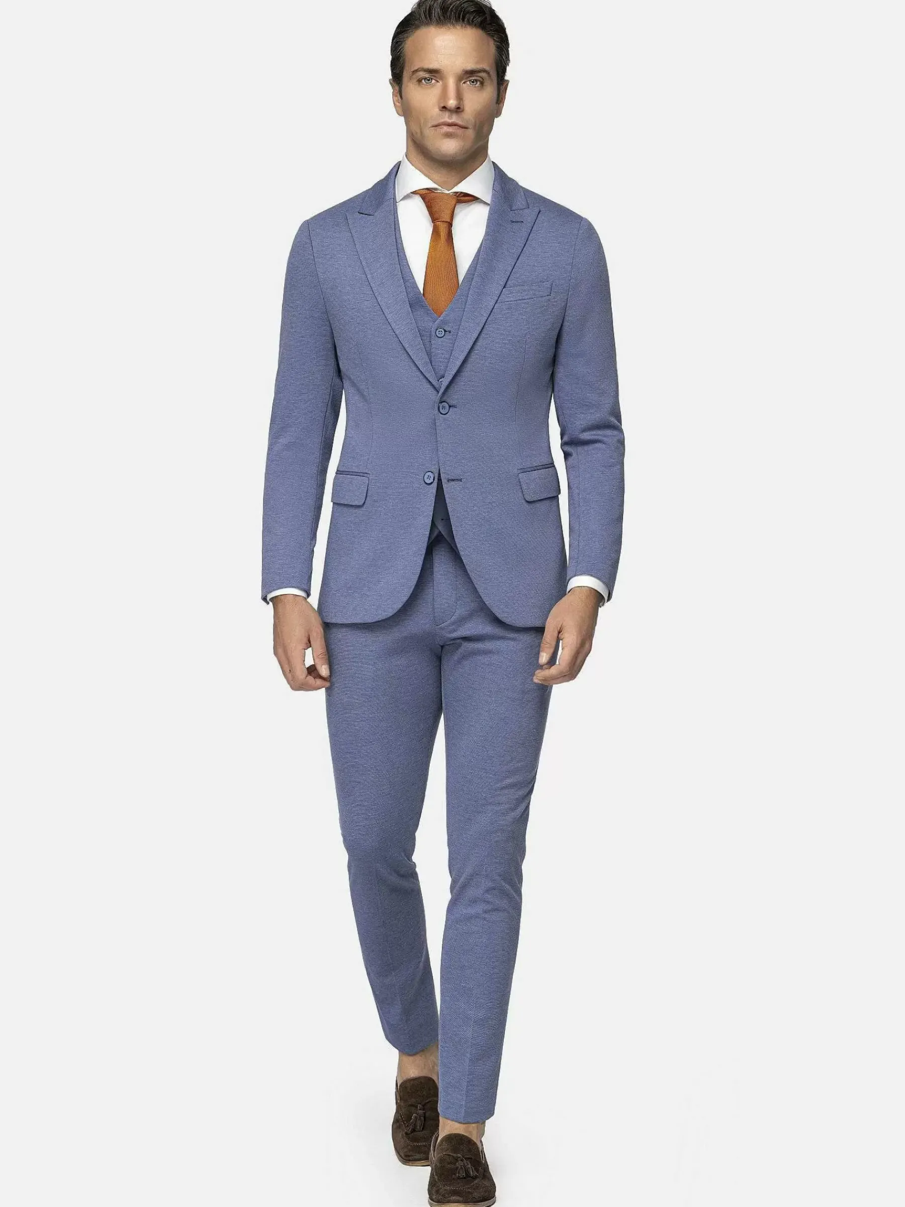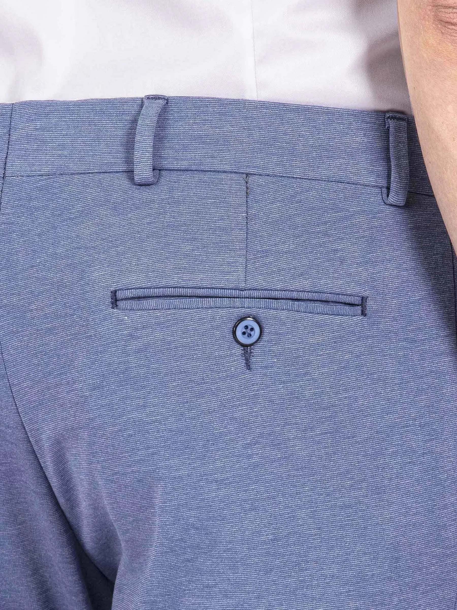 Stijlvolle Pantalon In Een Mooie Kleur Blauw. Sluit Perfect Om Het Lichaam. Voelt Heerlijk Zacht Aan. De Pantalon Met Ritssluiting Heeft Twee Steekzakken En Twee Achterzakken Met Knoopsluiting. Combineert Prachtig Met Bijpassend Gilet En Colbert.