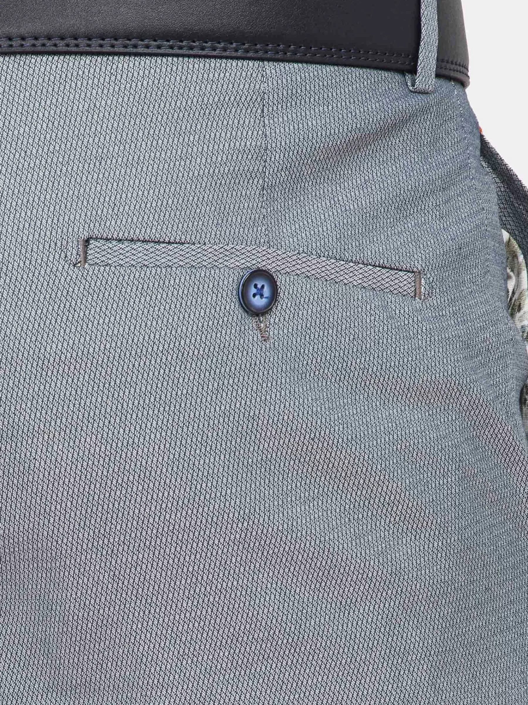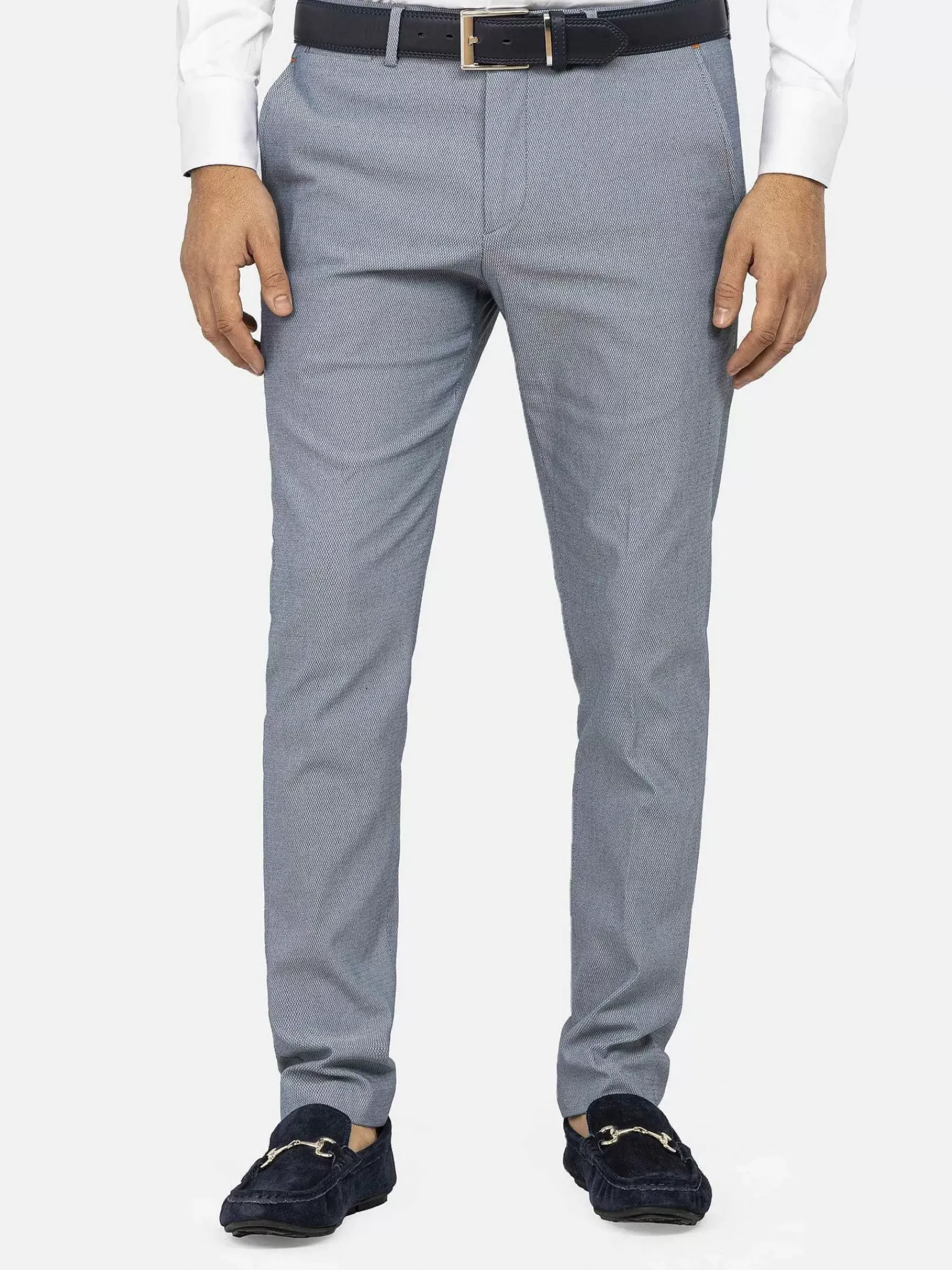 Blauwe Pantalon Met Ritsluiting. Deze Pantalon Is De Basis Voor Een Chique Outfit. Combineer Met Een Overhemd Met Bijvoorbeeld Bloemenmotief. Maak De Outfit Af Met Een Mooi Getailleerd Colbert.