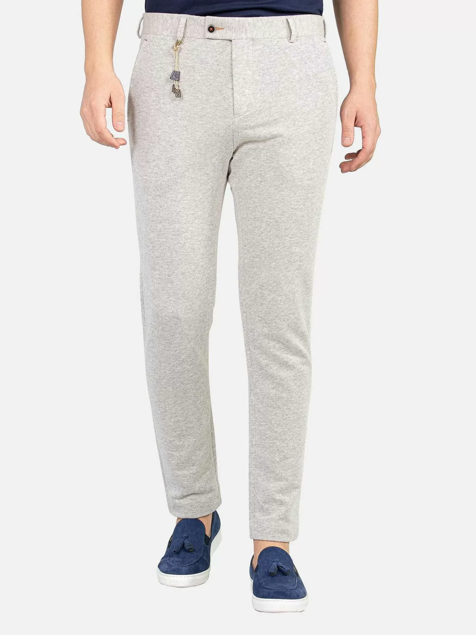 Stijlvolle, Grijze Pantalon Met Ritssluiting. Door De Stof Voelt De Pantalon Heel Zacht Aan. Dit Ontwerp Heeft Aflopende Pijpen En Twee Steekzakken Aan De Voor- En Achterzijde.
