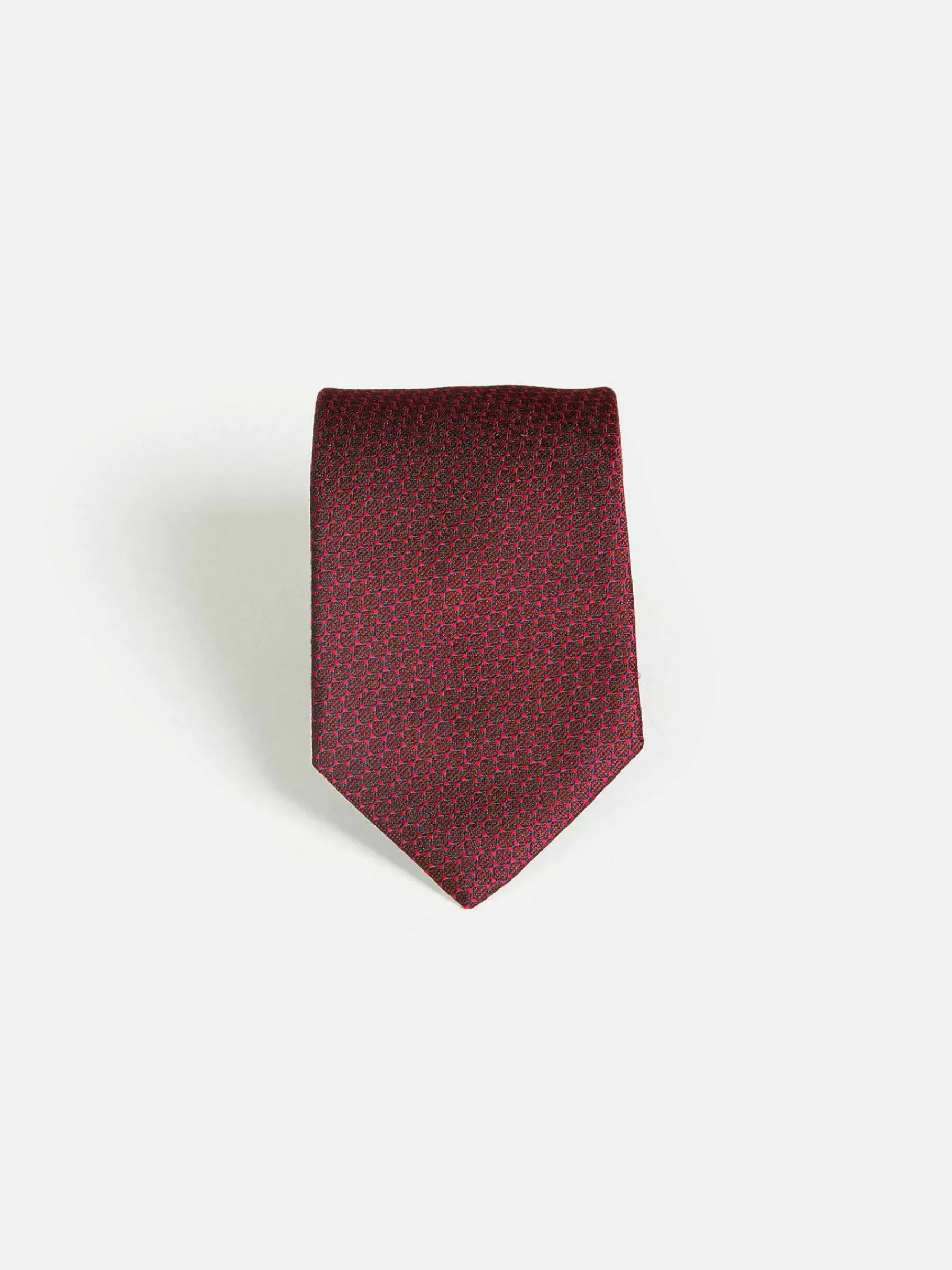Pierce Dark Red Stropdas, Met Een Uniek Stoffen Patroon Dat Elegantie Uitstraalt. Gemaakt Van Eersteklas Materialen, Maken De Subtiele Dark Red Tint En Ingewikkelde Textuur Een Duidelijk Statement. Verhoog Je Stijl Moeiteloos Met Dit Uitzonderlijke Accessoire.