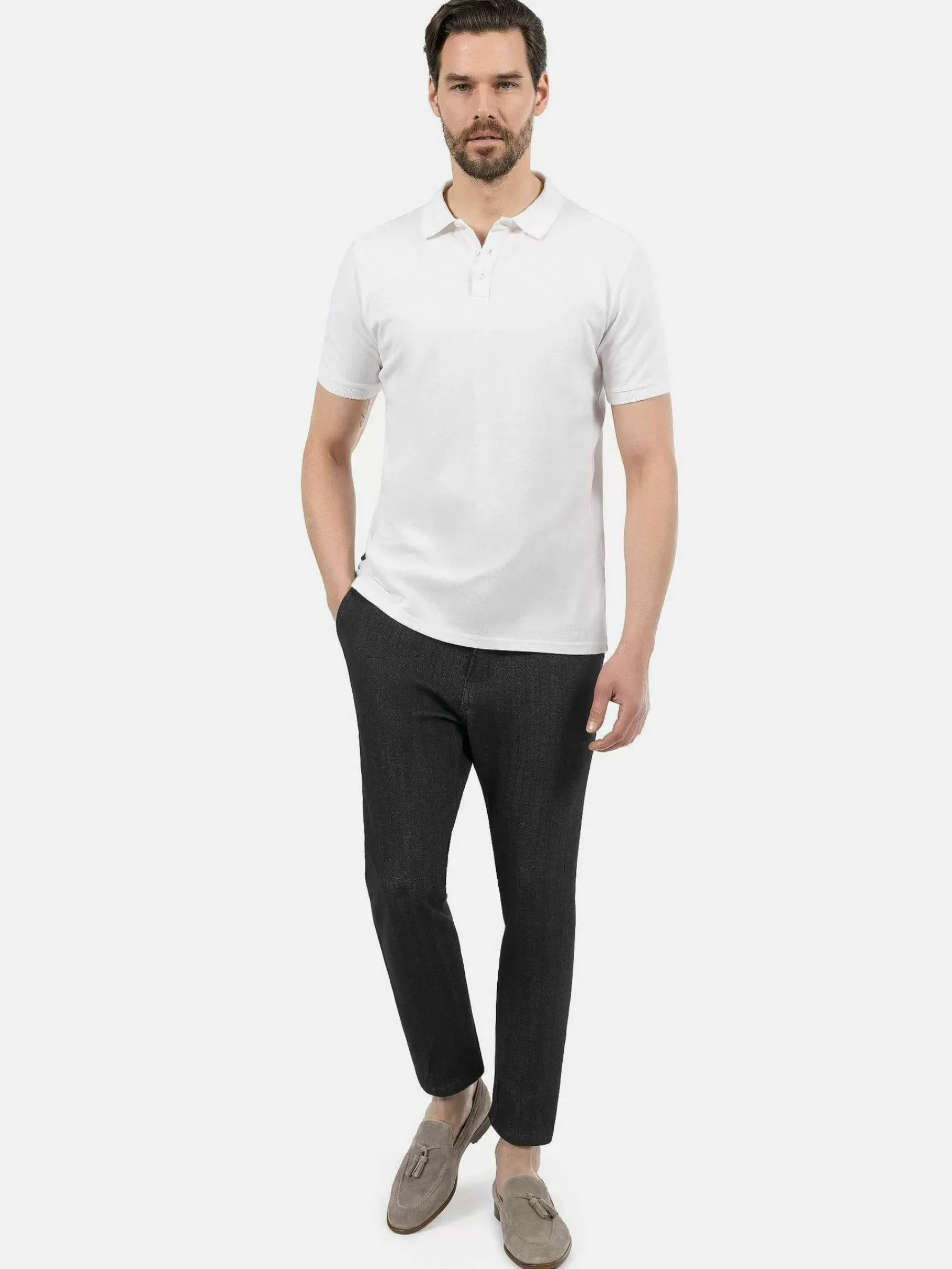 Wit Poloshirt Met Drie Knoopjes In De Hals. Een Klassieker Die Iedere Man In Zijn Garderobe Moet Hebben. Met Alle Kleuren Te Combineren En Voor Verschillende Gelegenheden Te Dragen. Luchtig En Modieus.