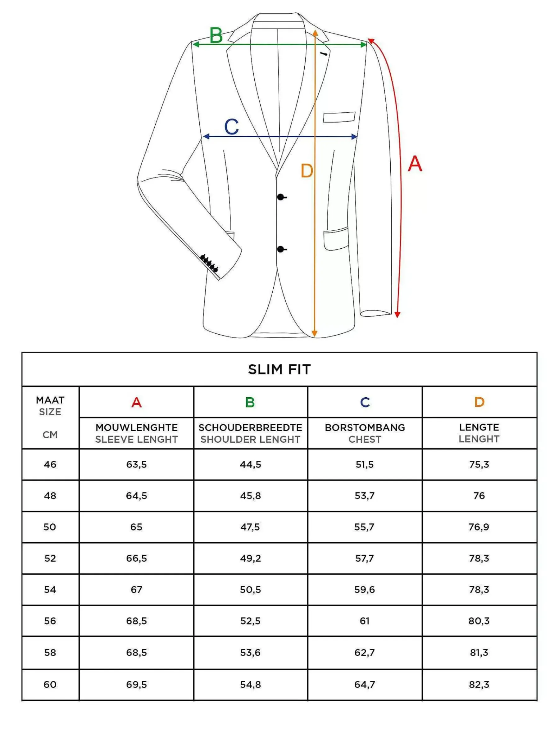| Maat | 44, 46, 48, 50, 52, 54, 56, 58 |