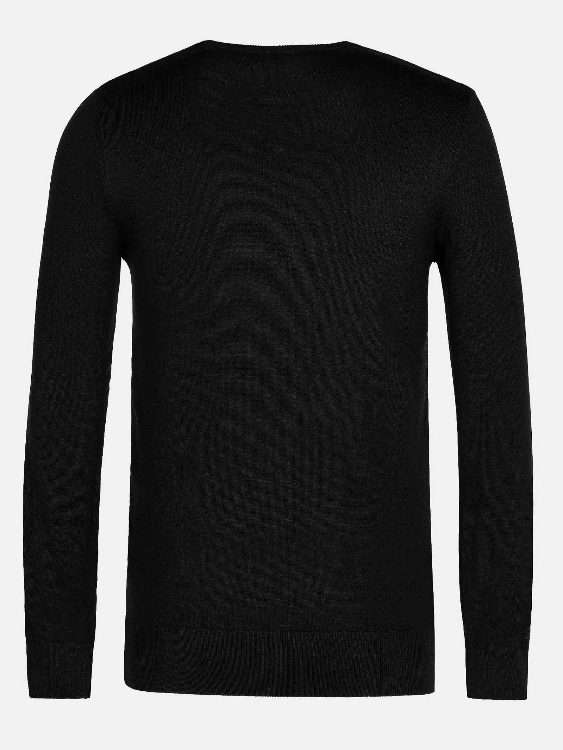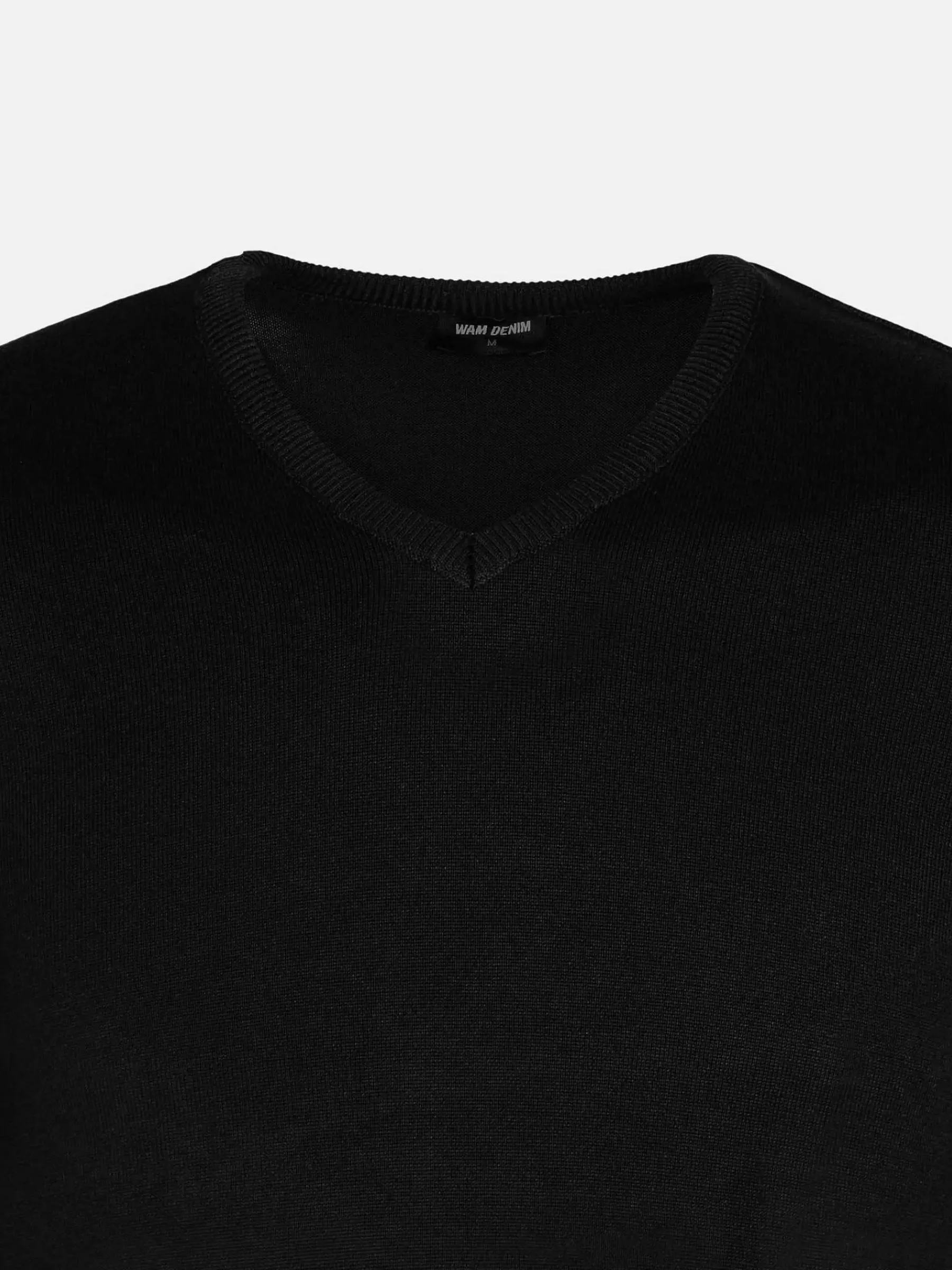 Zwarte Sweater Met V-Hals. Dit Model Heeft Een Elastisch Boord Aan De Onderkant Voor Een Perfecte Pasvorm. Deze Sweater Is Ook Verkrijgbaar In De Kleuren Navy En Beige.