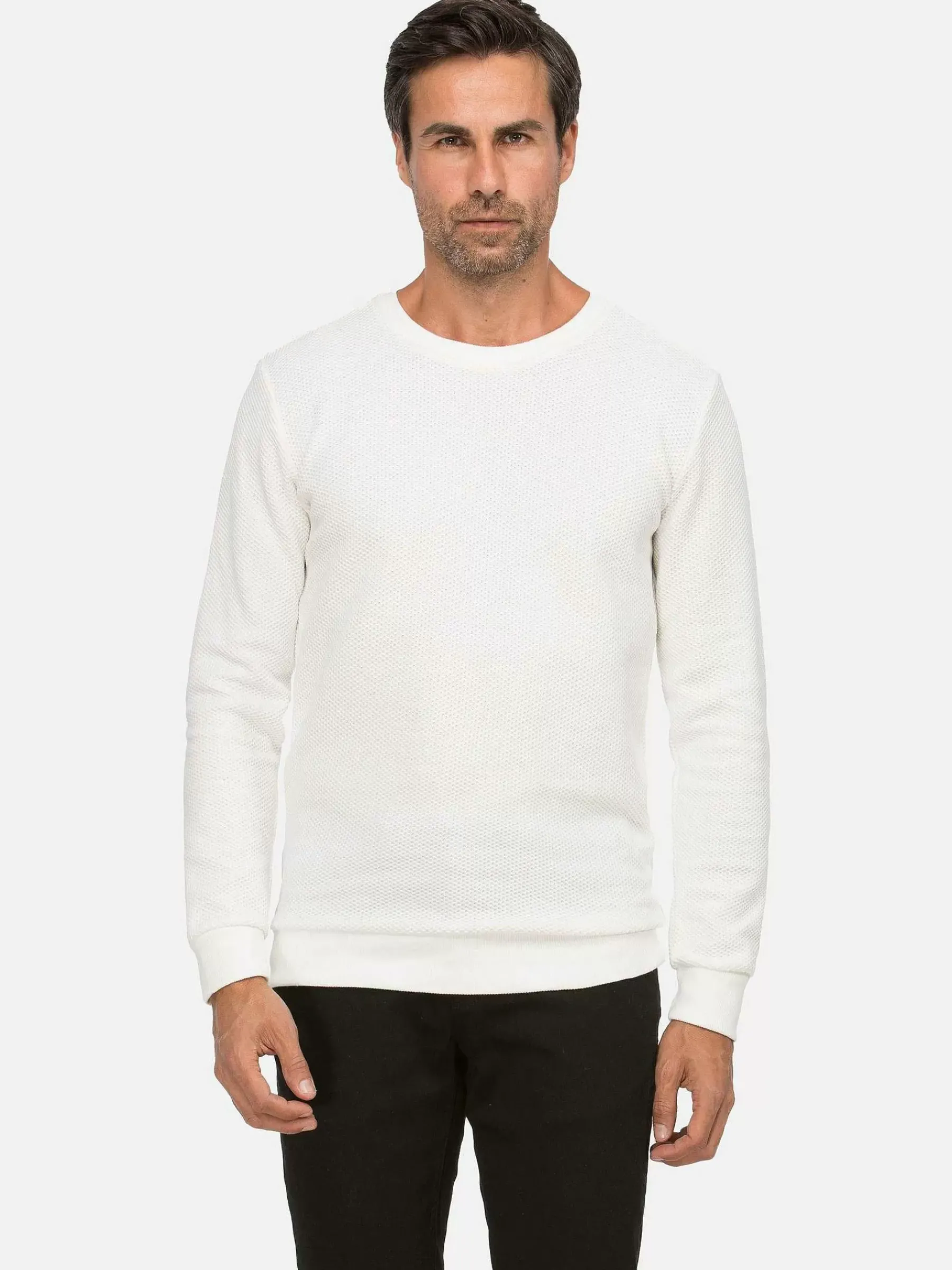 Witte Trui Met Elastische Boord Voor Een Perfecte Fitting. Deze Trui Heeft Een Slim Fit Pasvorm En Een Ronde Hals.
