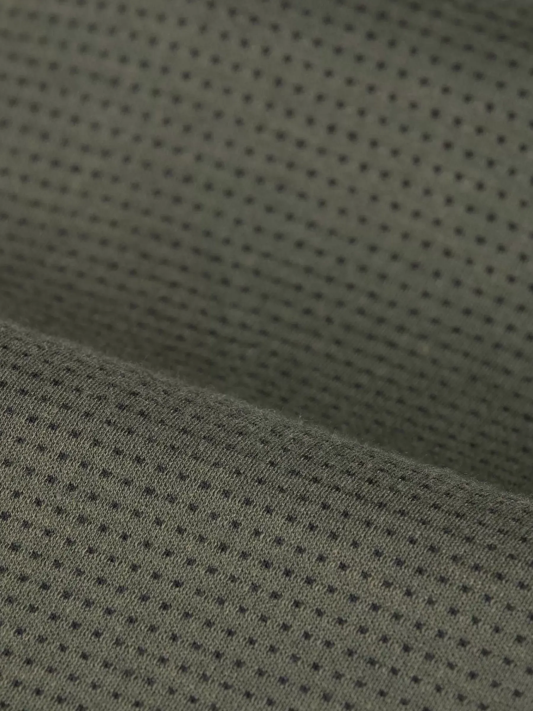 Khaki Kleurige Trui Met Stippenpatroon. Deze Trui Is Afgewerkt Met Een Ritssluiting Op De Linkerarm En Stretch Aan De Onderkant Voor Een Perfecte Pasvorm.