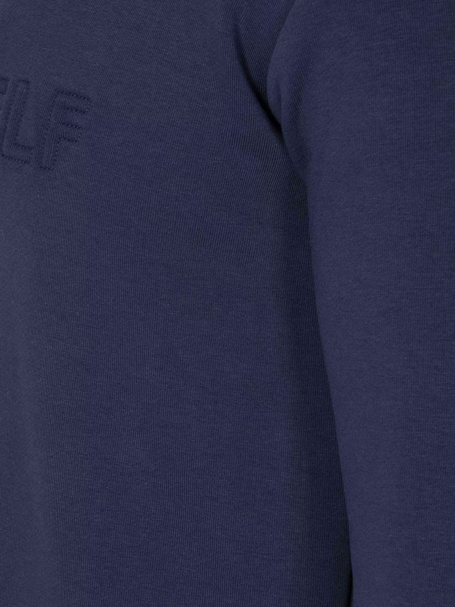 Navy Sweater Met Ronde Hals. Dit Model Heeft Een Elastische Boord Aan Het Uitende Van De Trui Voor Een Perfecte Pasvorm. Afgewerkt Met Tekst Print Op De Borst En Merkembleem.