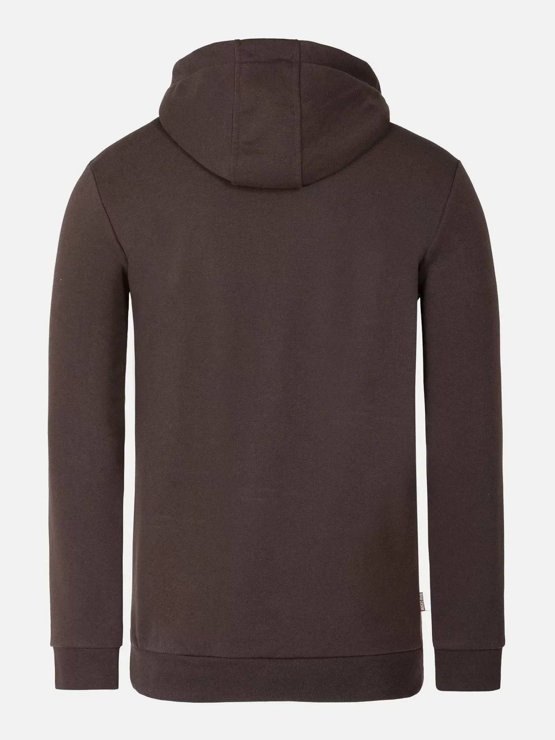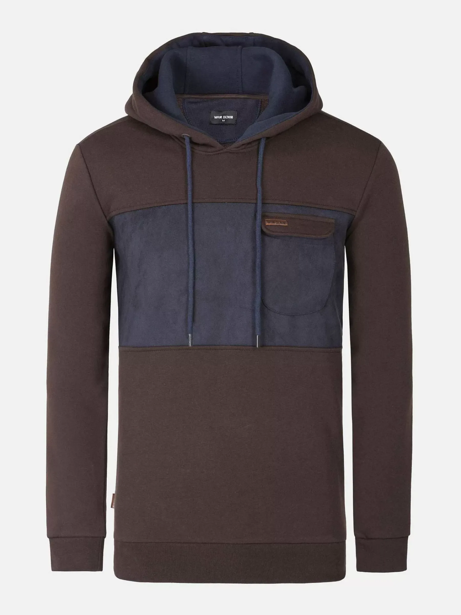Bruine Hoodie Met Op De Linkerborst Een Zak Met Wam Denim Label.