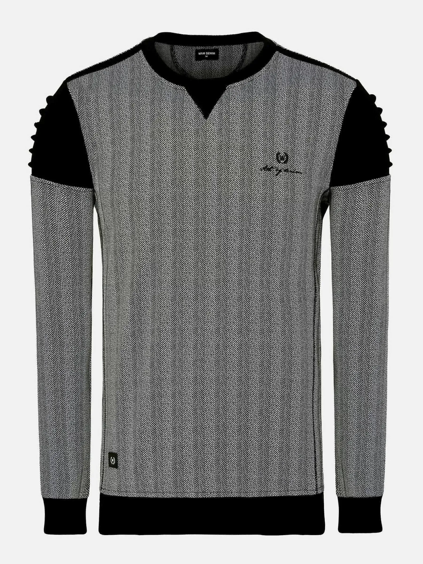 Grijze Sweater Met Ronde Hals. De Sweater Is Met Zwarte Schouderstukken Afgewerkt En Heeft Links Op De Borst Een Subtiel Logo. Dit Model Heeft Lichte Verticale Strepen Voor Een Fraai Effect. Staat Goed Op Een Jeans Voor Een Casual Look. Deze Sweater Is Ook In Het Bruin Verkrijgbaar.
