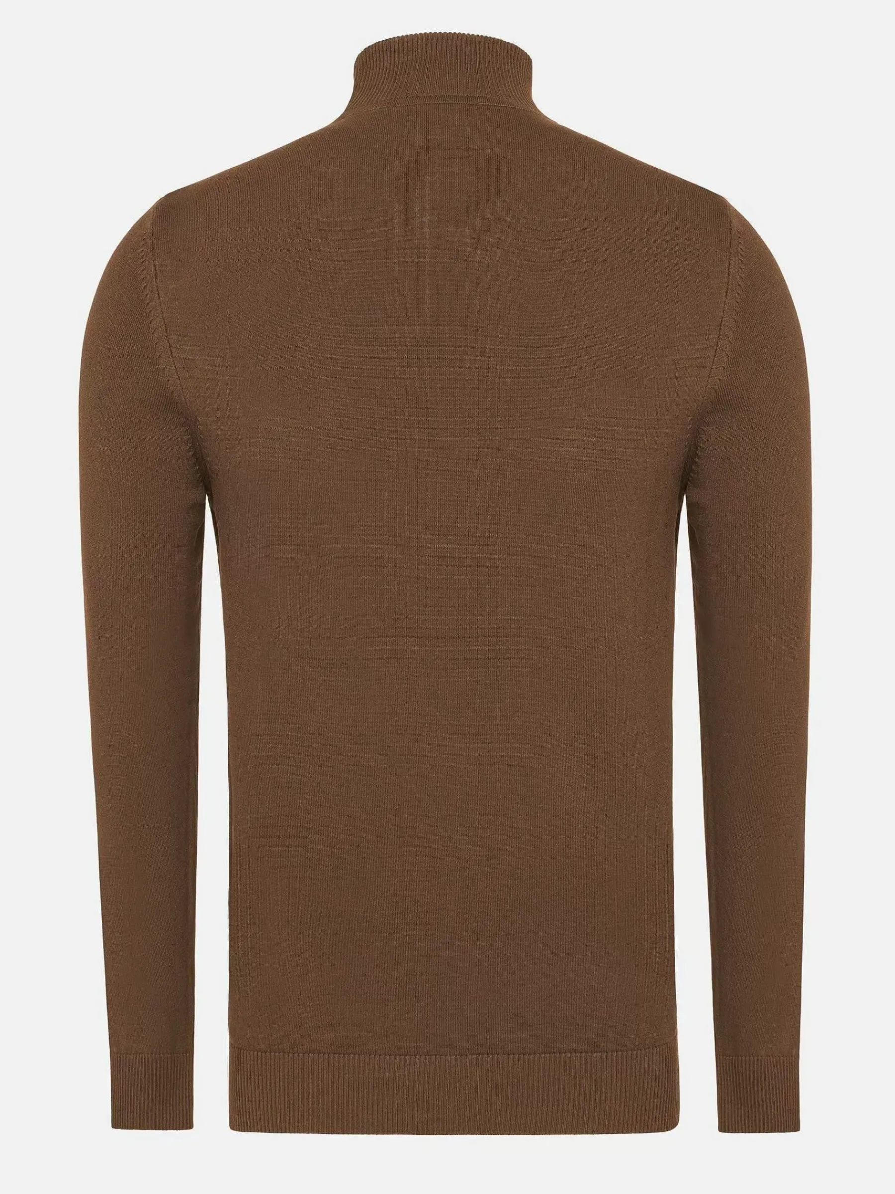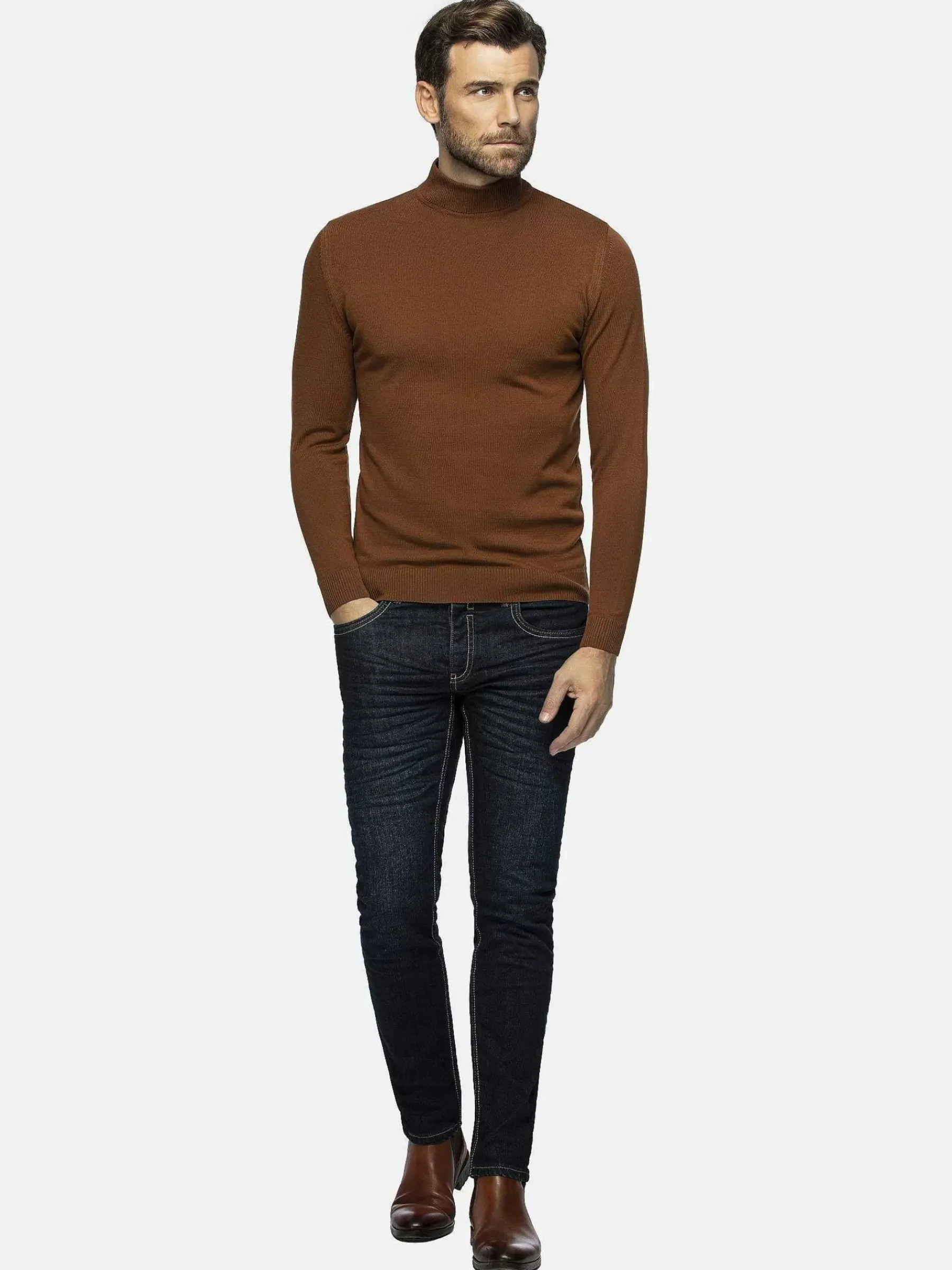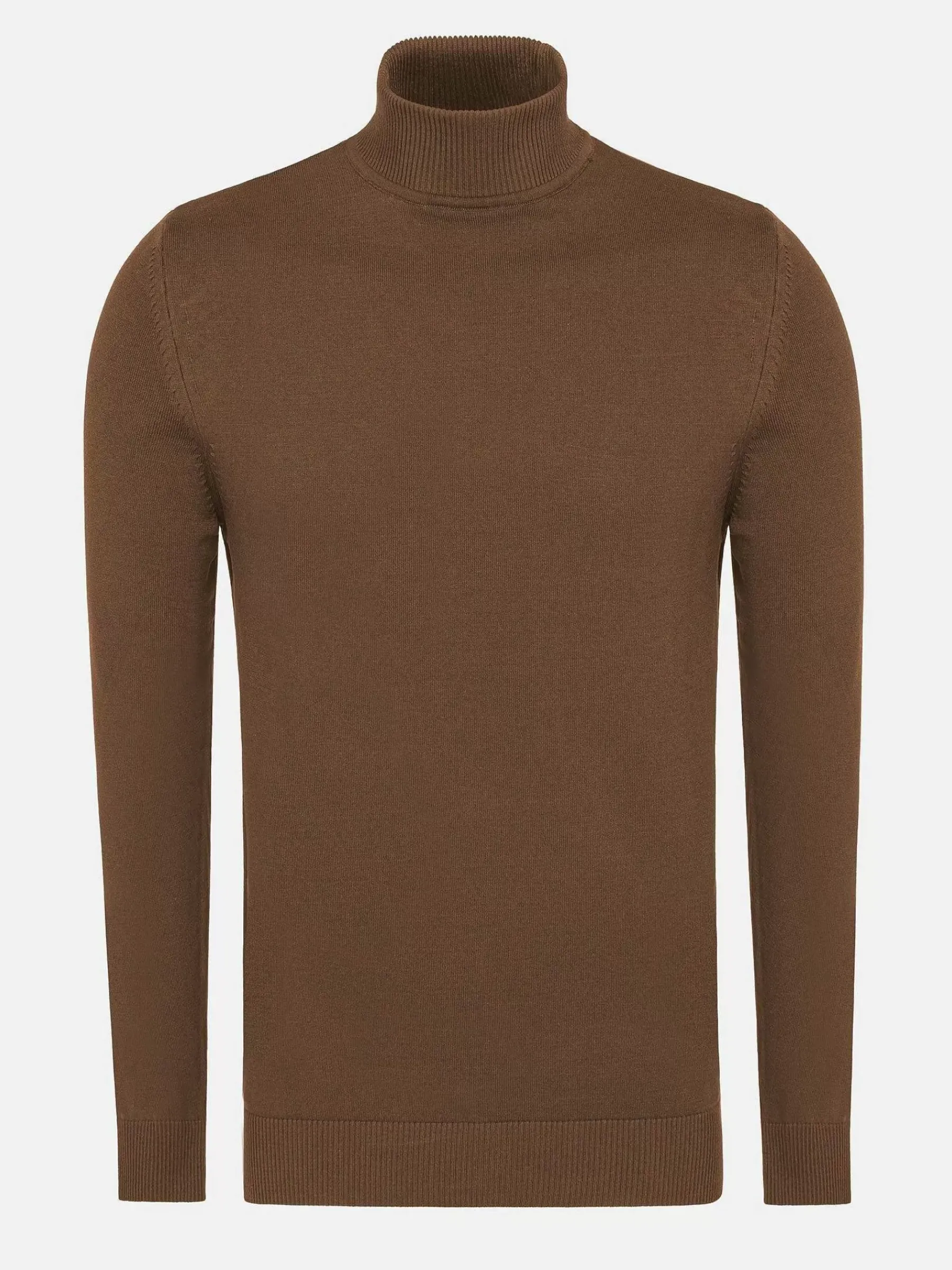 Stijlvolle Coltrui In Een Effen Peru Kleur. Draag Licht En Comfortabel, Gemaakt Van Zachte Viscose, Gemengd Met Polyamide Voor Meer Comfort. Als Stijldetail Heeft De Sweater Een Geribbelde Manchet En Taille Voor Een Moderne Look. Dit Model Is Ook In Donkerbruin Verkrijgbaar.