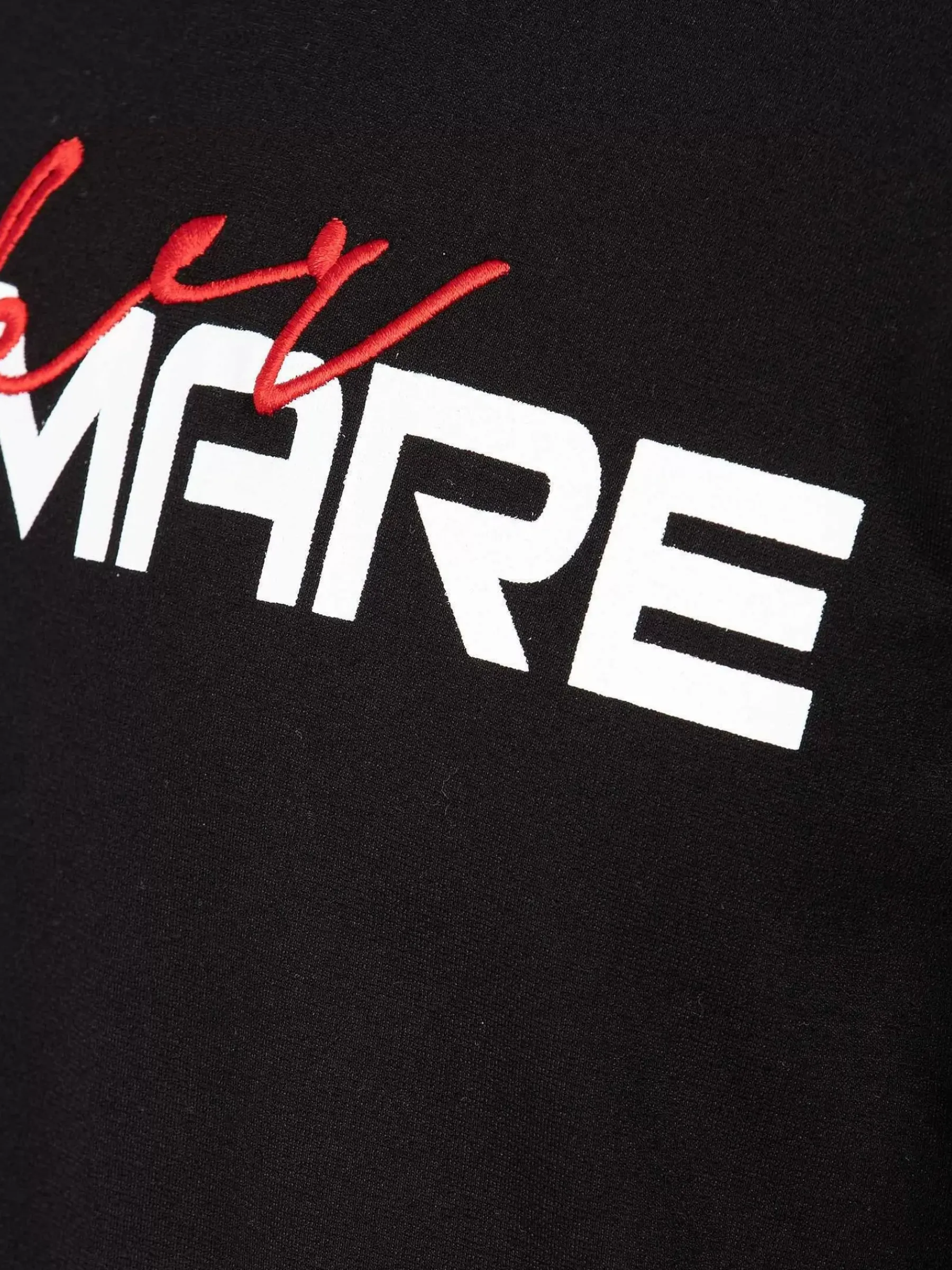 Zwarte Trui Met Tekst Op De Voorkant En Grote Afbeelding Van ‘The Joker’ Op De Achterkant. Afgewerkt Met Een Elastische Zoom En Ronde Halslijn.