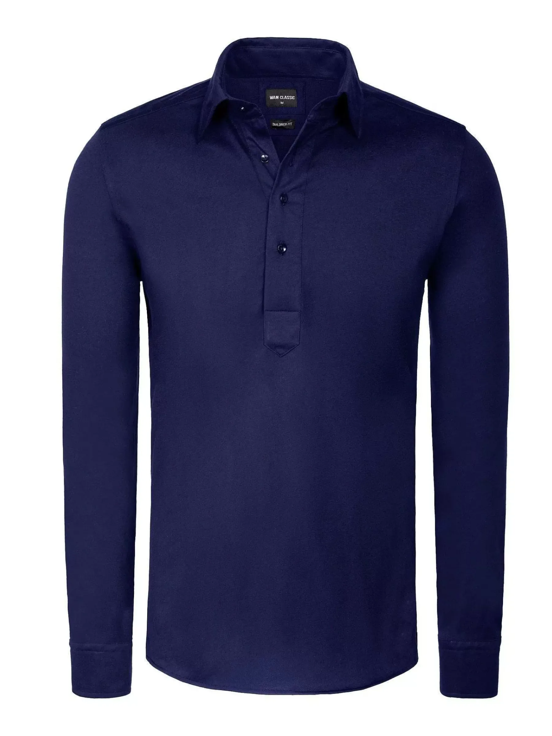 Mooie Sweater In Een Navy Kleur. Wat Deze Sweater Bijzonder Maakt Is De Chique Kraag En Knoopsluiting In De Hals. Prachtig Te Combineren Met Een Pantalon, Chino Of Jeans. Dit Model Kan Gedragen Worden Met Veel Verschillende Kleuren.