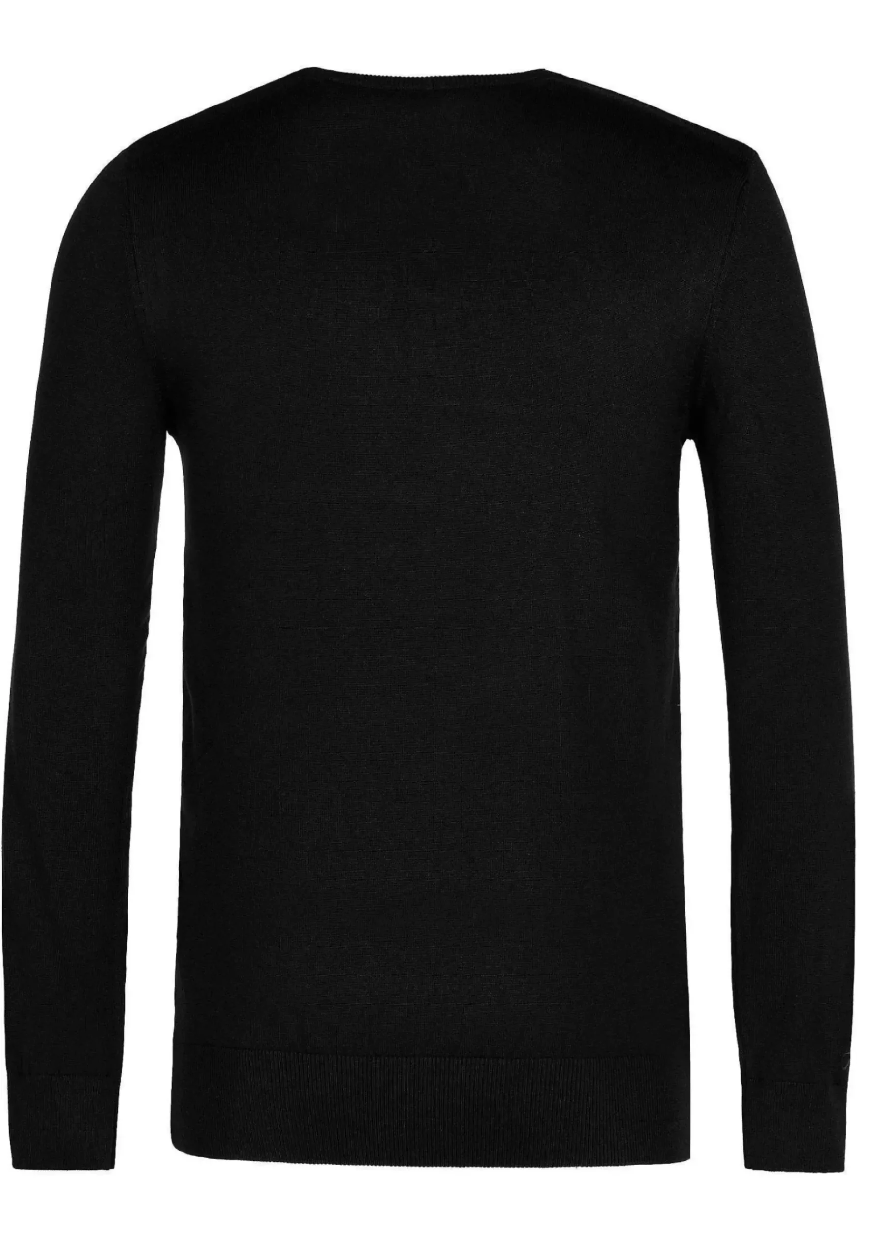 Zwarte Sweater Met V-Hals. Dit Model Heeft Een Elastisch Boord Aan De Onderkant Voor Een Perfecte Pasvorm. Deze Sweater Is Ook Verkrijgbaar In De Kleuren Navy En Beige.