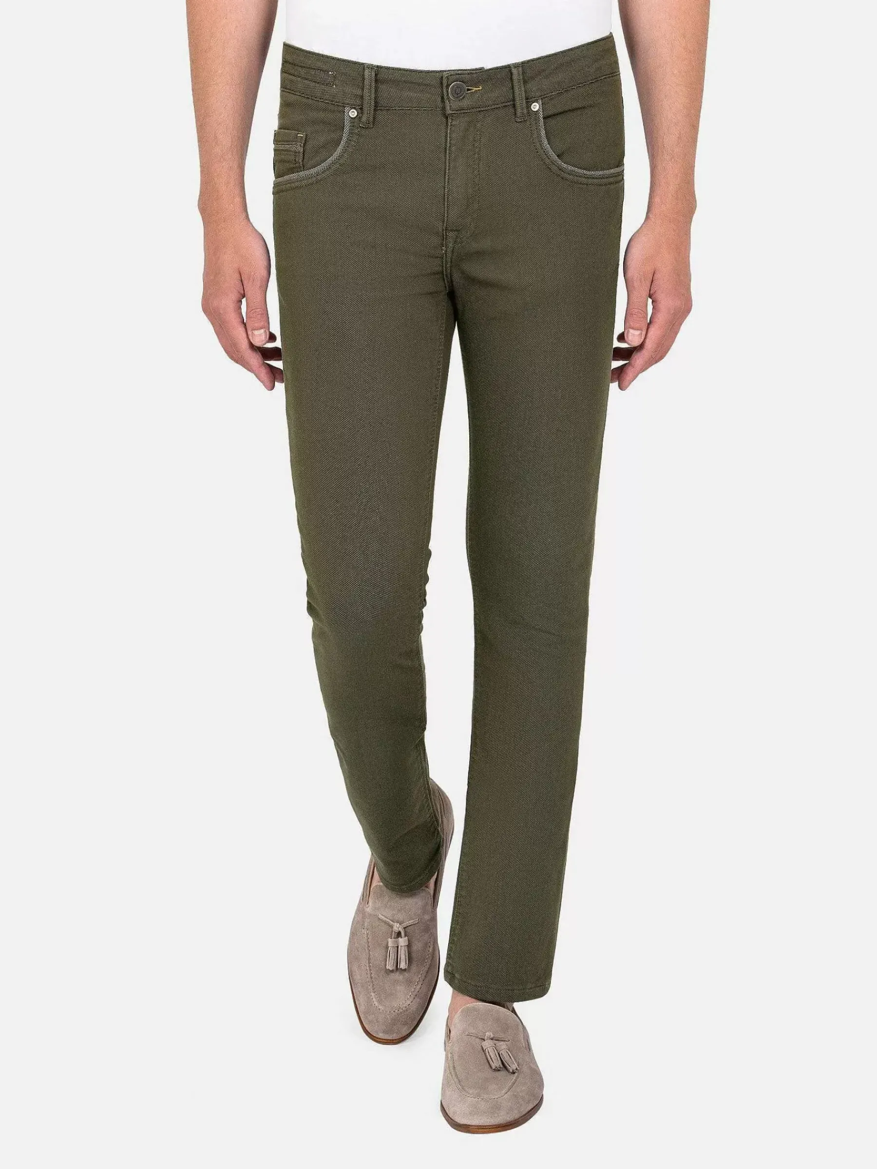 De Swindon Stretch Slim-Fit Jeans In Khaki Is Ontworpen Om Zowel Comfort Als Stijl Te Bieden. Het Elastische Materiaal Zorgt Voor Een Goede Pasvorm Zonder Afbreuk Te Doen Aan De Bewegingsvrijheid. De Kaki Kleur Voegt Een Vleugje Verfijning Toe Aan Elke Outfit, Waardoor Ze Perfect Zijn Voor Zowel Casual Als Formele Gelegenheden. Het Slim-Fit Ontwerp Van Deze Jeans Accentueert Je Figuur En Geeft Je Een Slanke En Stijlvolle Look. Verbeter Je Denim Spel Met De Swindon Slim-Fit Stretch Khaki Jeans.