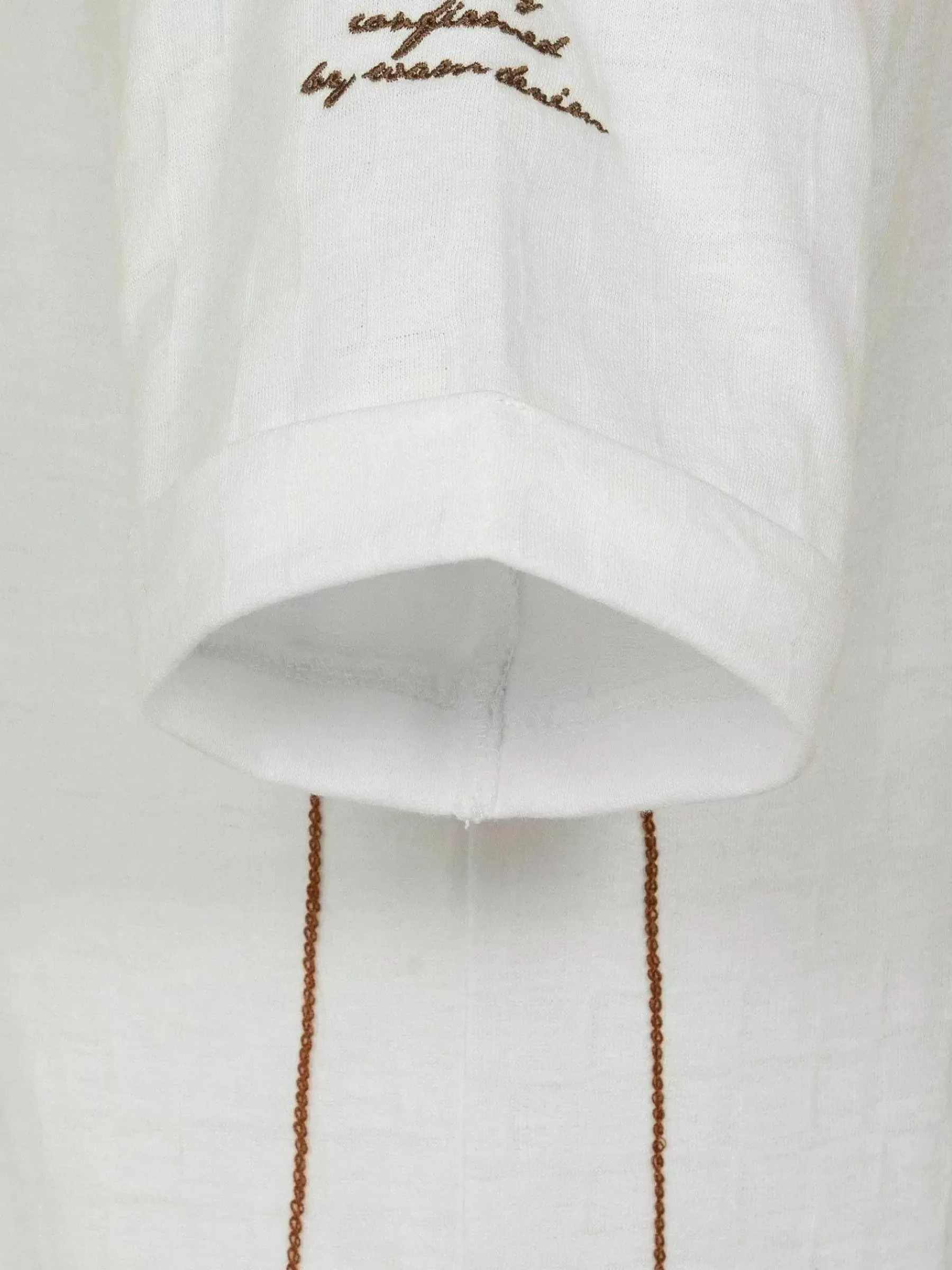 Het Morpheus Slim Fit Stretched White T-Shirt Is Een Stijlvol En Comfortabel Stuk Met Een Slanke V-Hals En Een Getailleerde Pasvorm. De Slanke Pasvorm En Het Unieke Spoorpatroon Voegen Individualiteit Toe, Terwijl Het Bruine Contrast In De Nek De Visuele Aantrekkingskracht Vergroot.