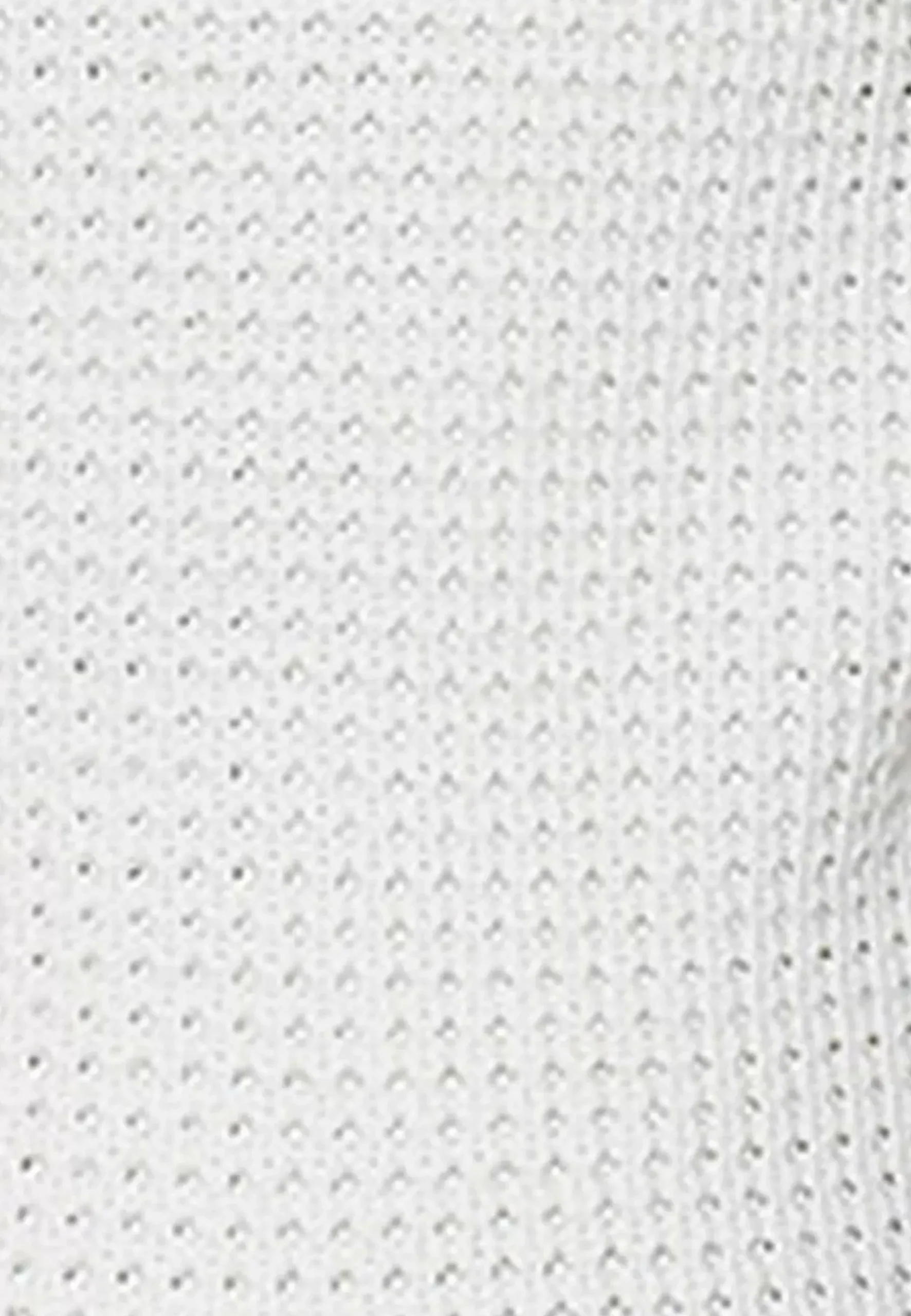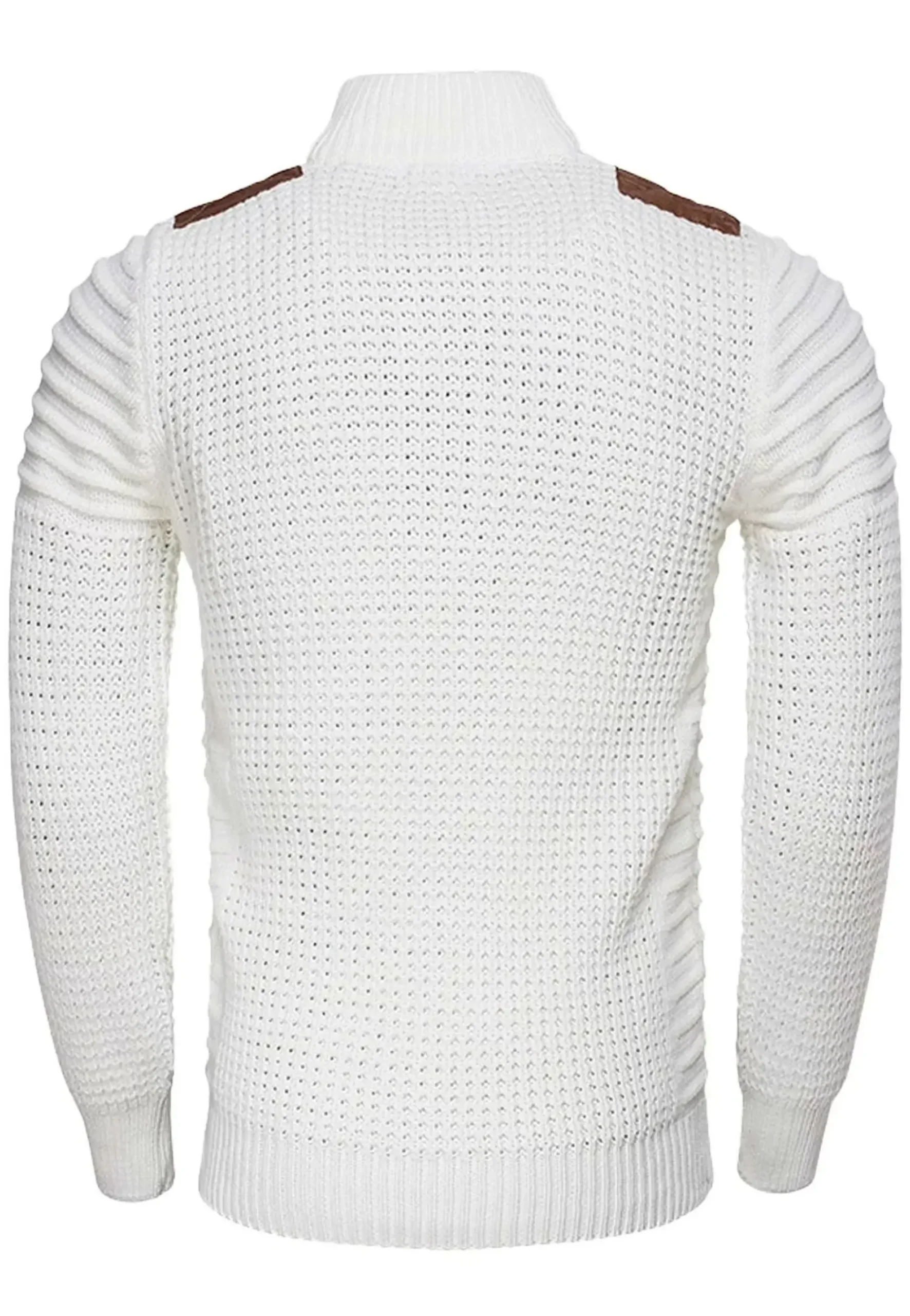 Licht Getailleerde Witte Trui Met Zakje Op De Linkerborst. Dit Model Heeft Een Knoopsluiting In De Hals Met Mooie, Grote Knopen In Licht- En Donkerbruin.