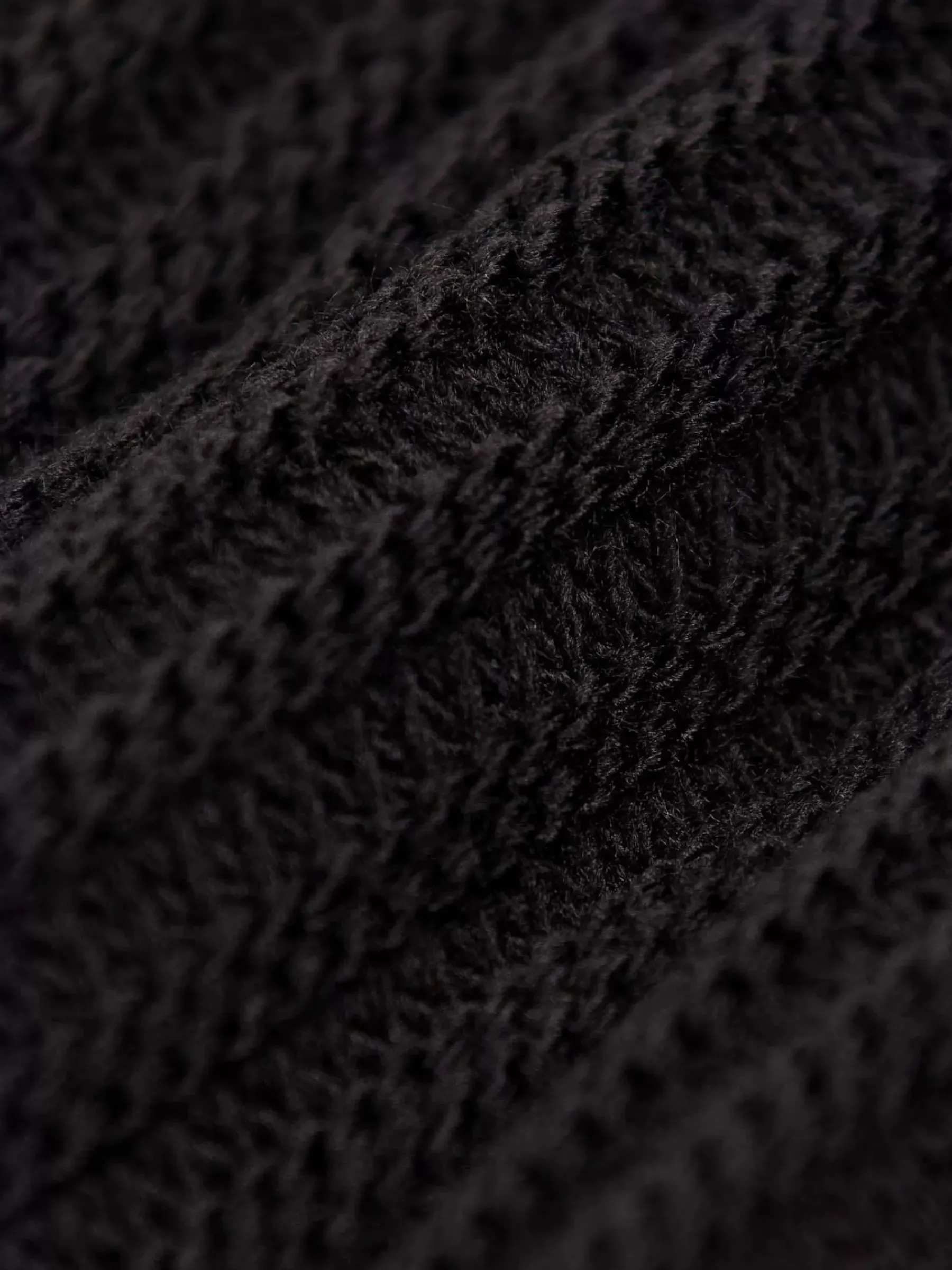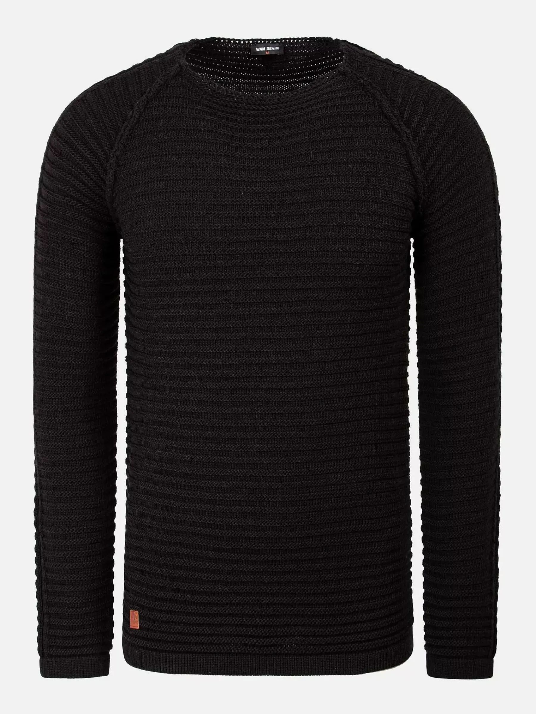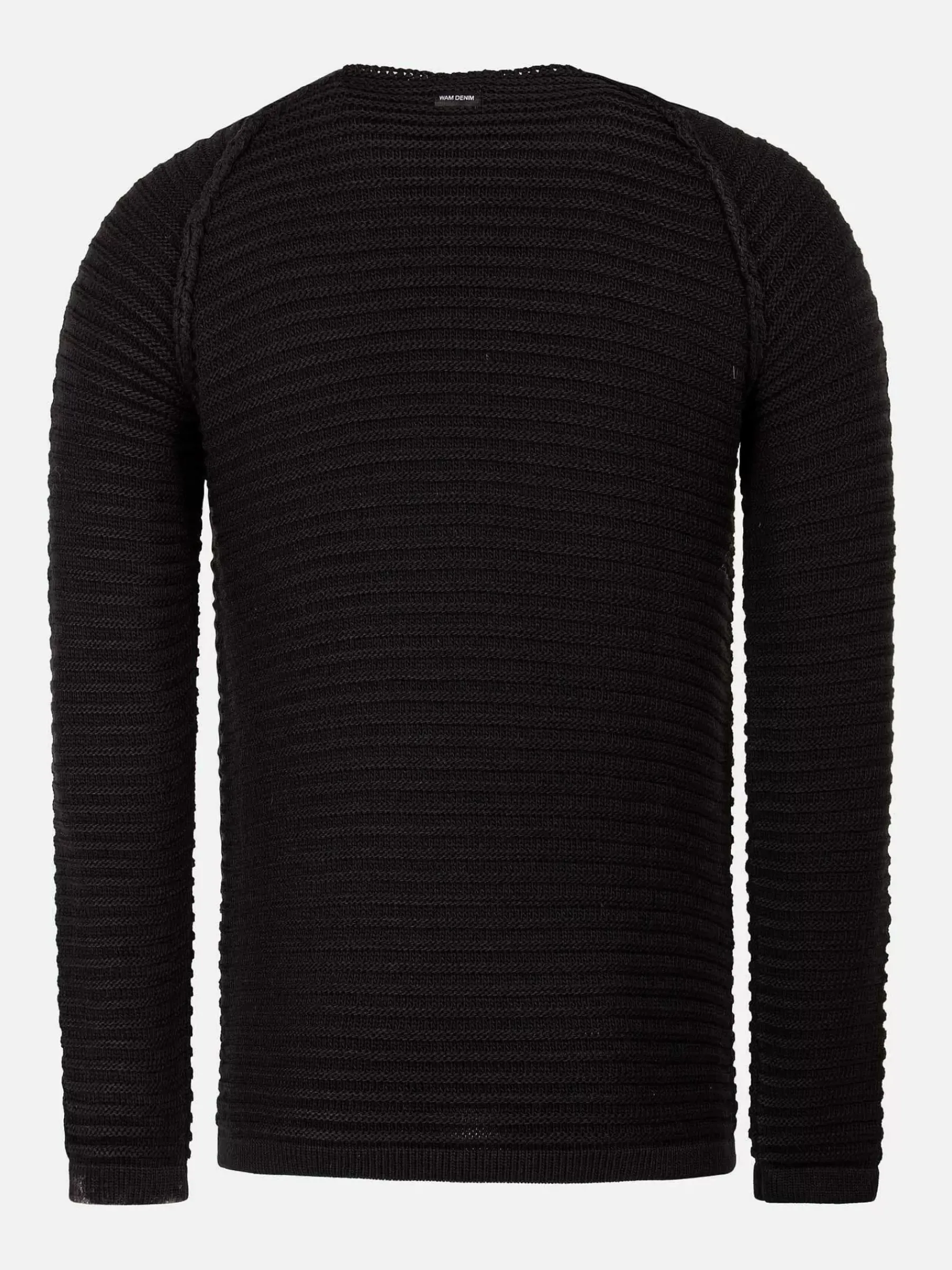 Zwarte Trui Met Slim Fit Pasvorm, Ronde Hals En Lange Mouwen. Met Detail Afgewerkt, Bruin Embleem Rechtsonder Aan De Trui.