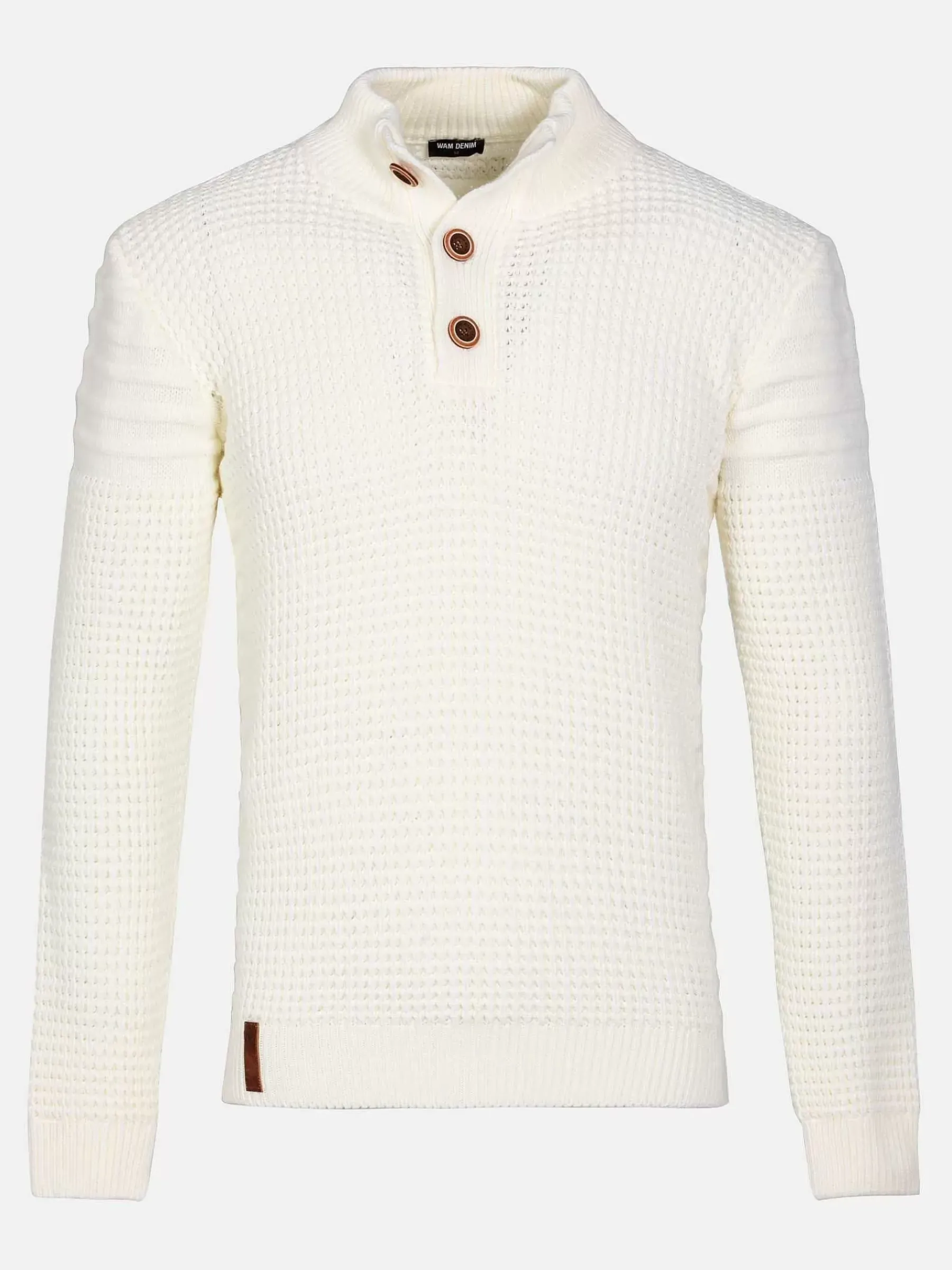 Stijlvolle, Warme Witte Trui Met Knoopsluiting In De Hals. Mooi Afgewerkt Met Embleem Linksonder En Met Een Elastische Boord Voor Een Perfecte Pasvorm.