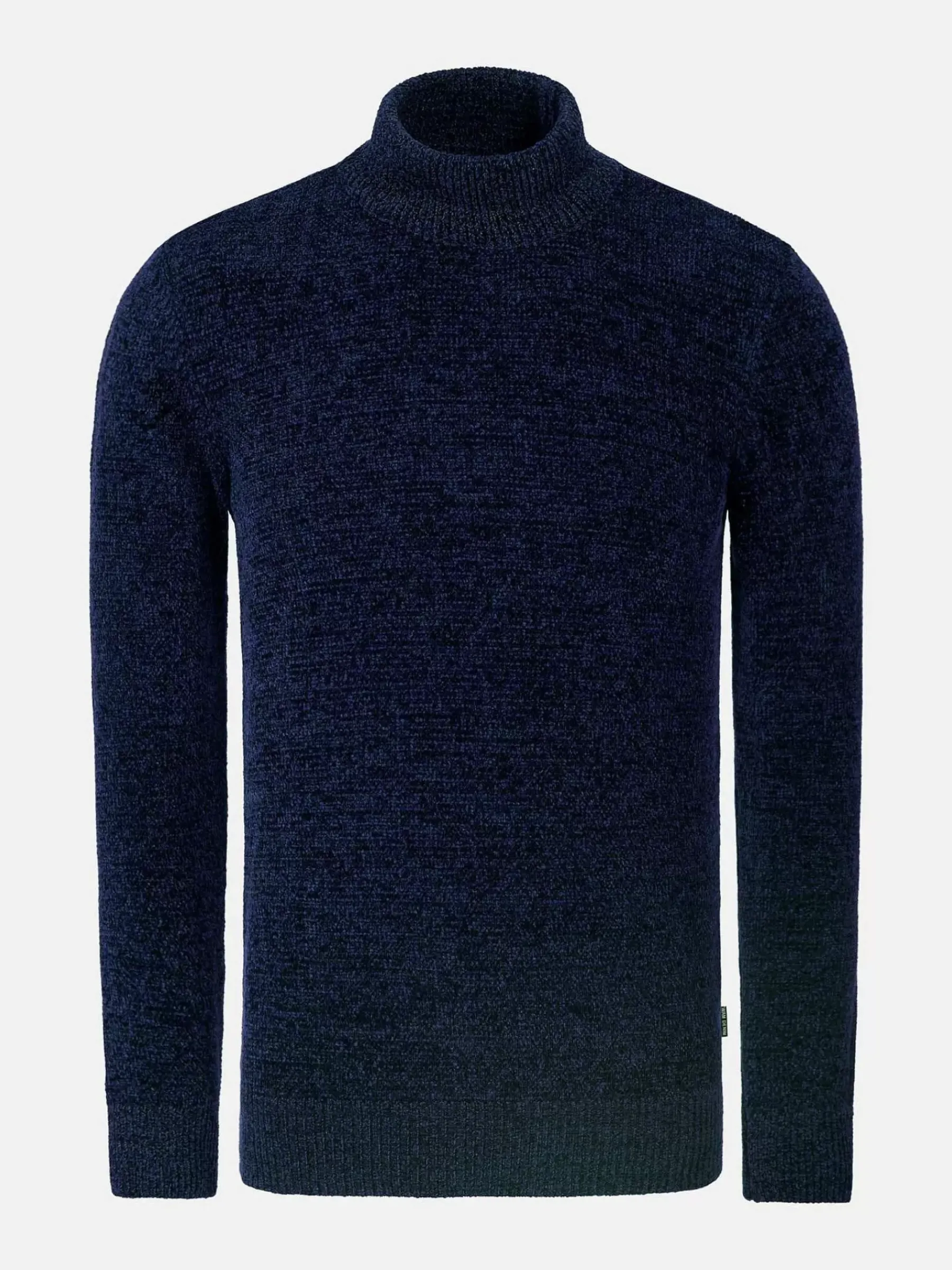 Navy Kleurige Trui Met Hoge Kraag En Ronde Hals. Door De Stretch Stof Verwerkt In De Trui, Heeft Dit Model Een Heel Comfortabele Pasvorm. Komt Mooi Tot Uiting Op Een Pantalon, Maar Is Evengoed Uitstekend Te Dragen Met Een Jeans.