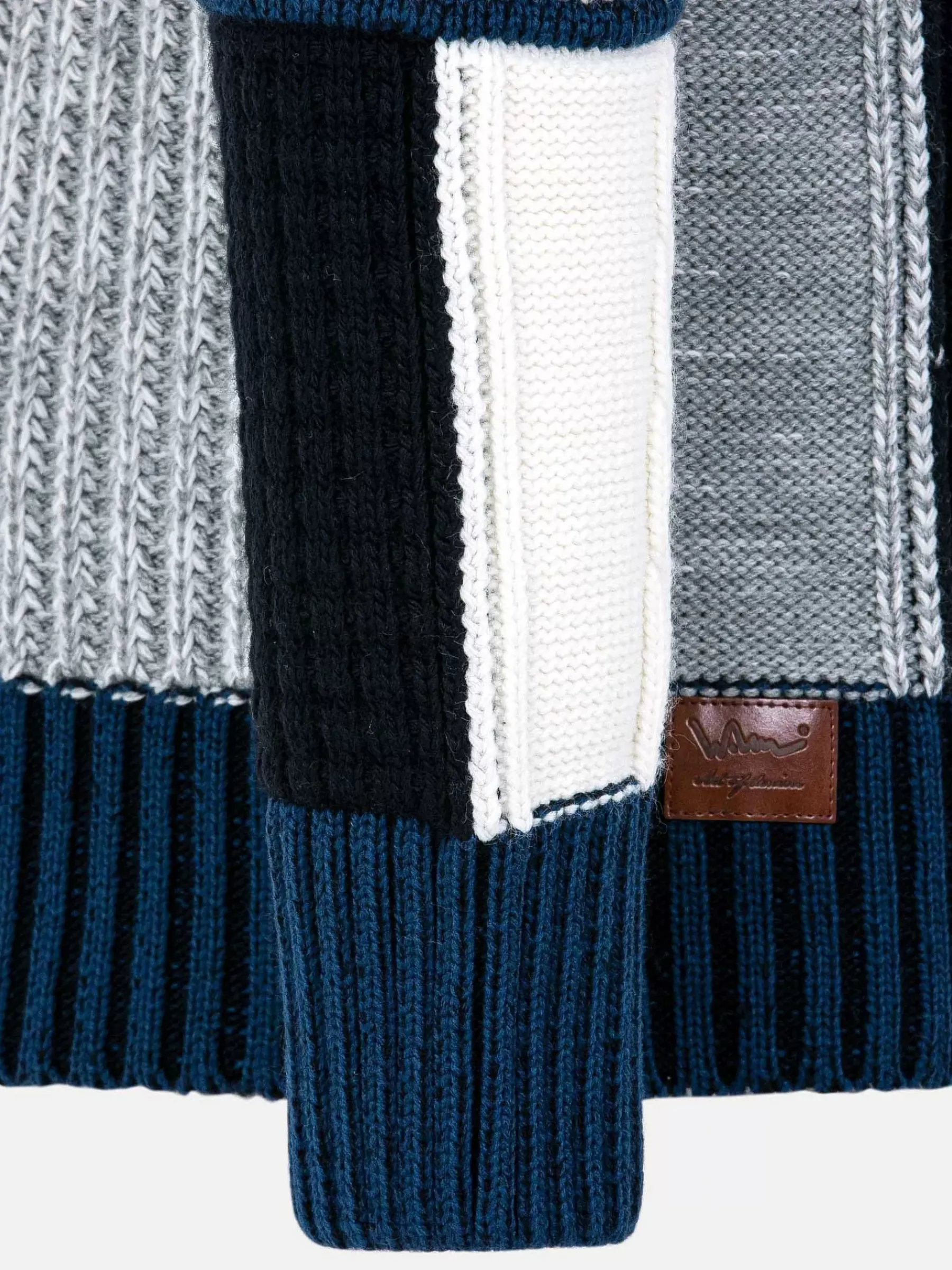 Prachtige Trui Met Een Elegante Uitstraling In Een Mooie Driekleur Combinatie. De Trui Heeft Een Opvallend Design Met Knopen In De Hals Die Dit Model Iets Extra’S Geven. Voor Een Stijlvolle Look Draag Je Deze Trui Op Een Nette Jeans Of Chino.